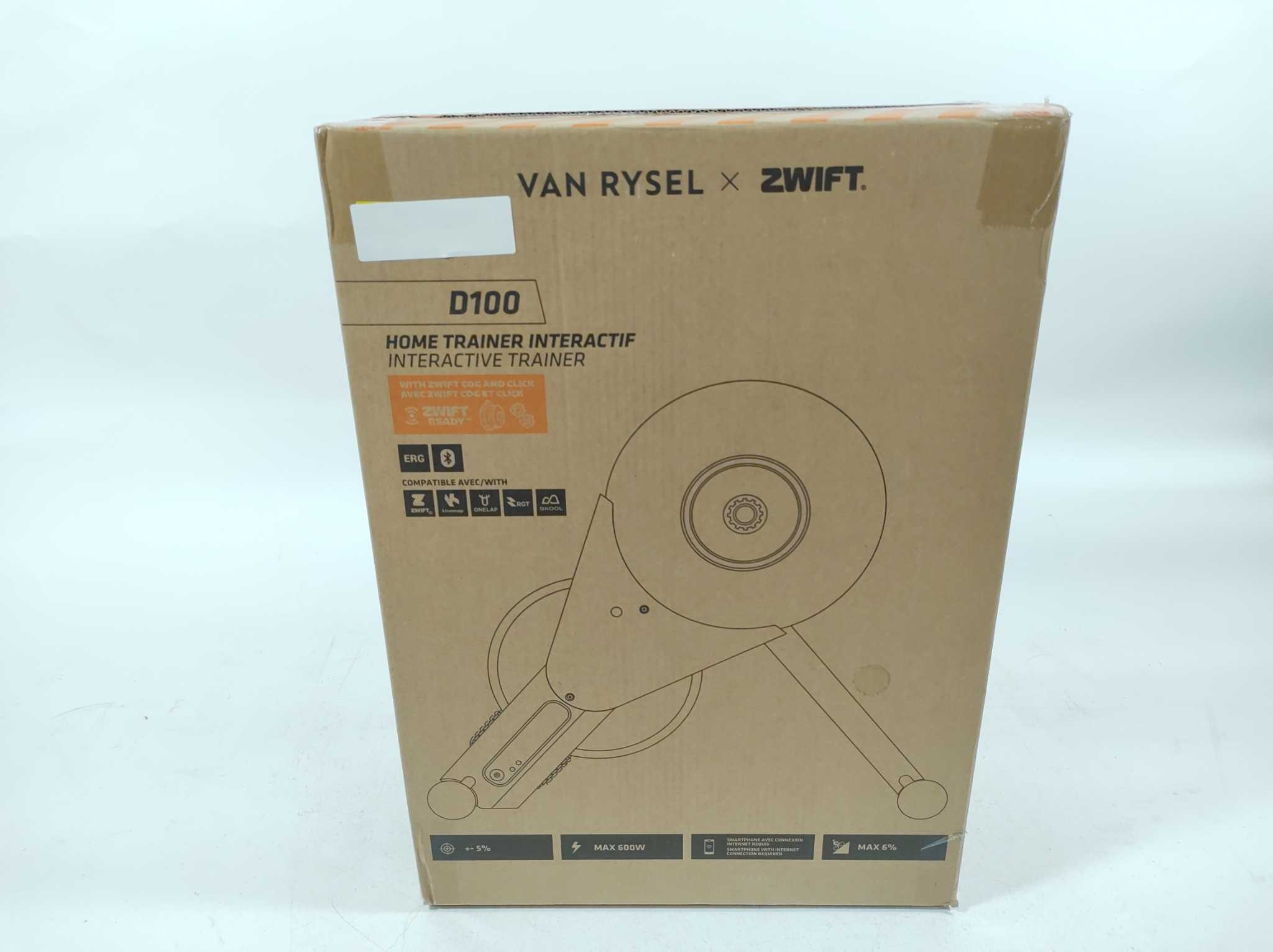 Van Rysel Fietstrainer D100 Smart Trainer – Zwift Ready. Start met indoor fietsen met de Van Rysel D100 Smart Trainer – Zwift Ready. Dankzij de vooraf geïnstalleerde Zwift Cog en Zwift Click rijd je direct virtueel. De trainer meet vermogen tot ca. 600 W,
