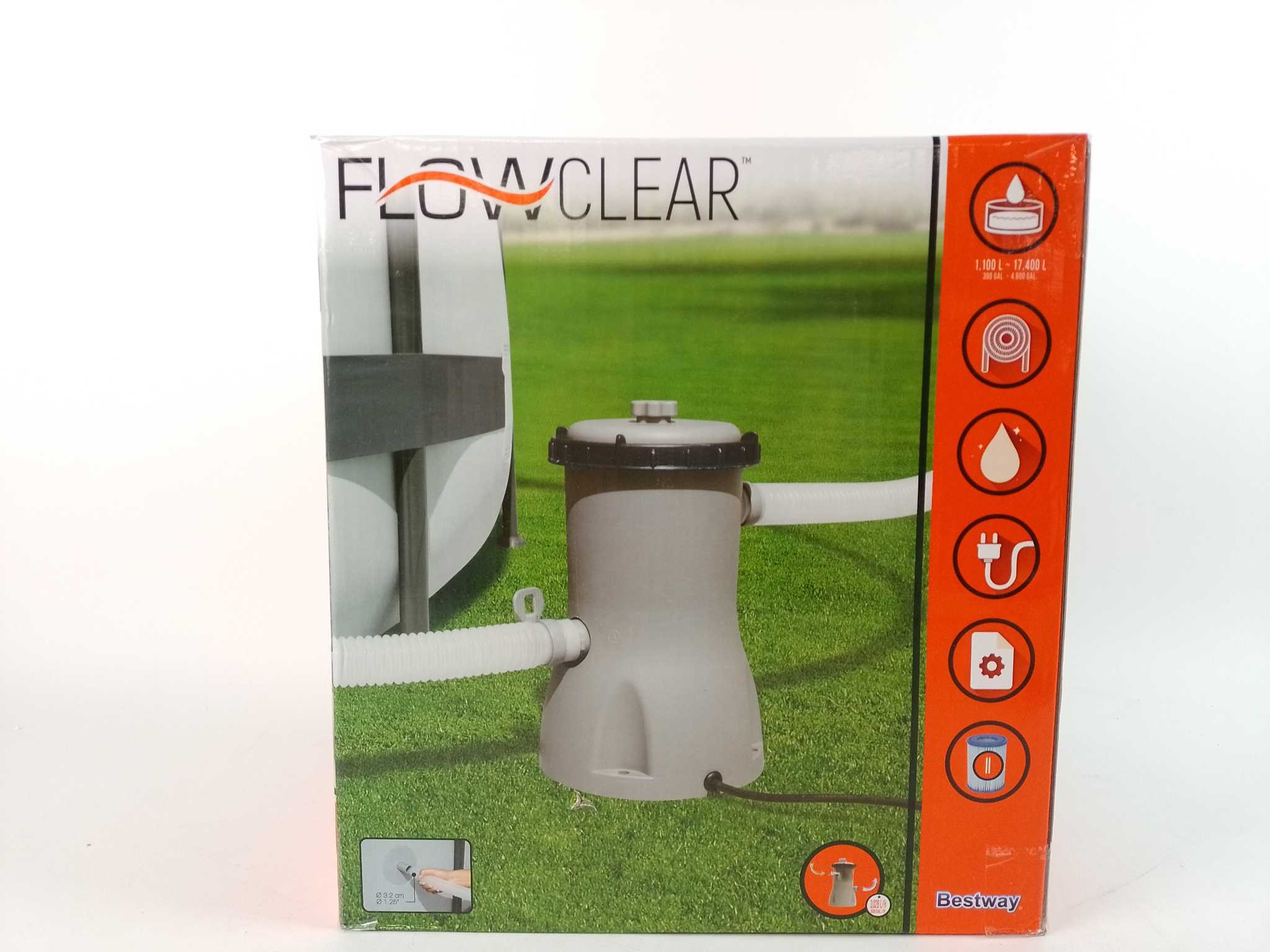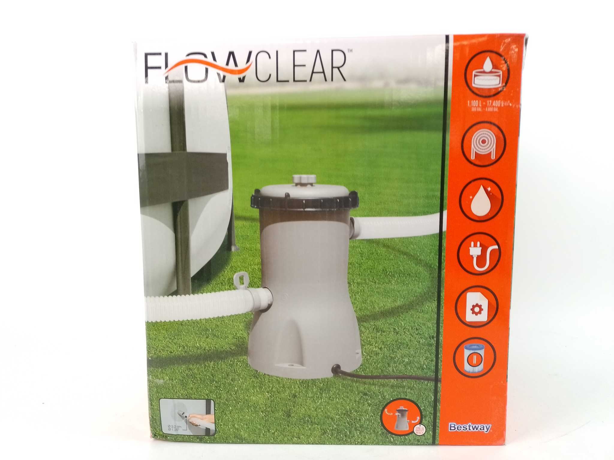 Bestway Filterpomp Flowclear 3.0 m³/u. De Bestway Flowclear filterpomp 3.028 l/uur houdt je opzetzwembad helder en hygiënisch met krachtige circulatie en fijne filtratie. Plug-and-play aansluiting op 32 mm slangaansluitingen, energiezuinig en stil in gebr