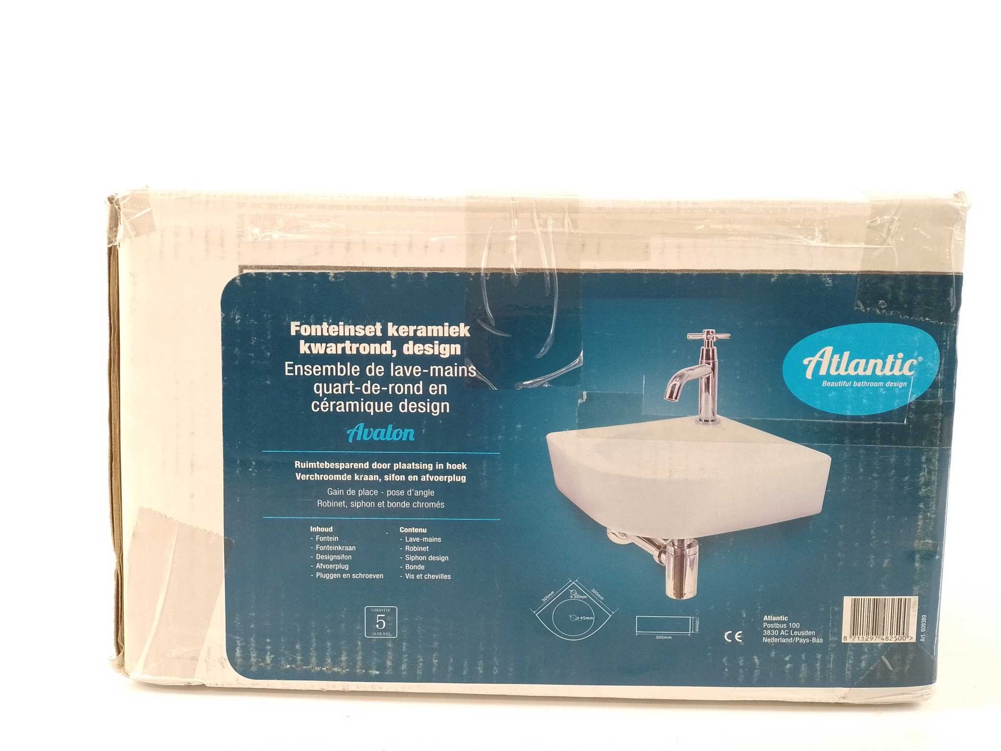 Atlantic Fonteinset Avalon - 30x30x10 cm - Wit. De Atlantic Avalon fonteinset is de slimme hoekoplossing voor kleine toiletruimtes. Het kwartronde, glanzend witte keramiek van 30×30×10 cm past strak in een 90° hoek en is eenvoudig te monteren. Inclusief k