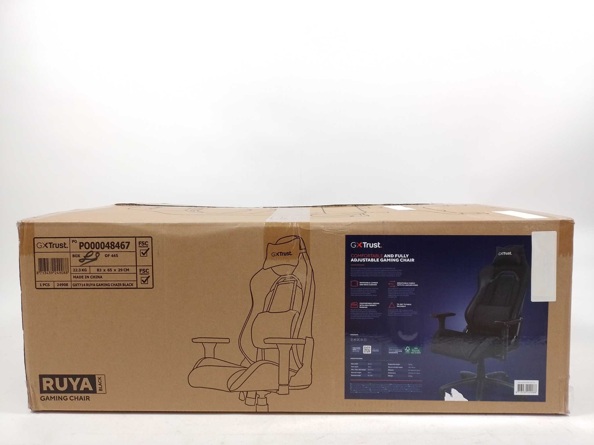 Trust Gamingstoel GXT 714 Ruya. De Trust GXT 714 Ruya gamingstoel (zwart) combineert comfort, duurzaamheid en volledige verstelbaarheid. Verstelbare hoogte, rugleuning, 3D-armsteunen en kantelmechanisme met vergrendeling zorgen voor de ideale zithouding.