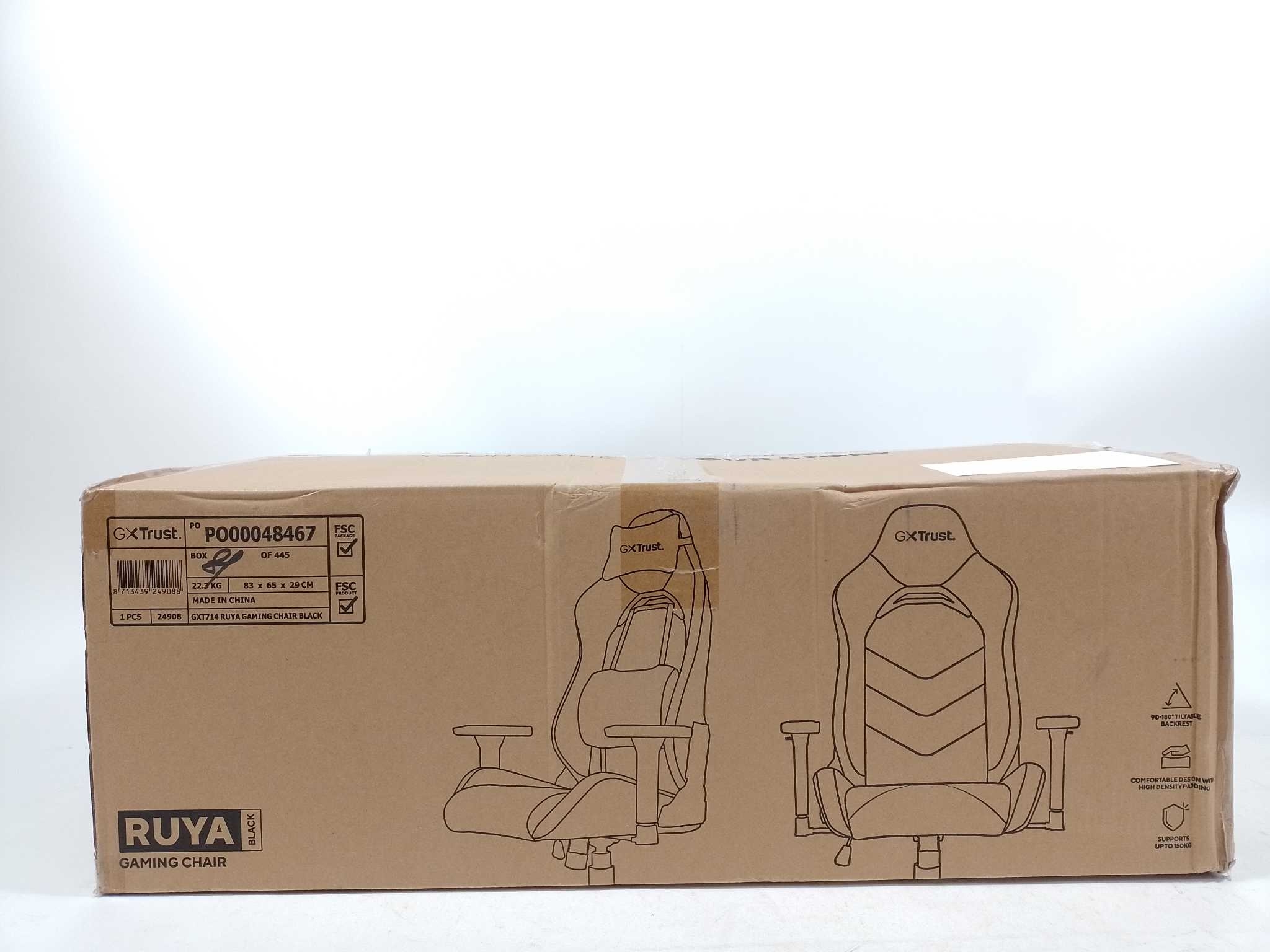 Trust Gamingstoel GXT 714 Ruya. De Trust GXT 714 Ruya gamingstoel (zwart) combineert comfort, duurzaamheid en volledige verstelbaarheid. Verstelbare hoogte, rugleuning, 3D-armsteunen en kantelmechanisme met vergrendeling zorgen voor de ideale zithouding. De ademende stof met PU-leeraccenten blijft fris; gegoten zitting en hoge-dichtheid rugschuim ondersteunen urenlang gamen. Frame van FSC-gecertificeerd hout en klasse-4 gasveer tot 150 kg. Inclusief nekkussen, lendekussen, installatiegereedschap, montagematerialen en handleiding. Perfect voor gaming en thuiswerken met moderne looks, stille wielen en solide bouwkwaliteit. Erg gemakkelijk schoon te maken en snel te monteren.