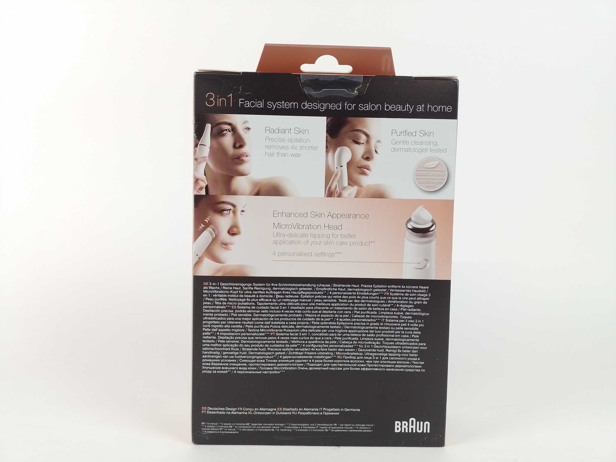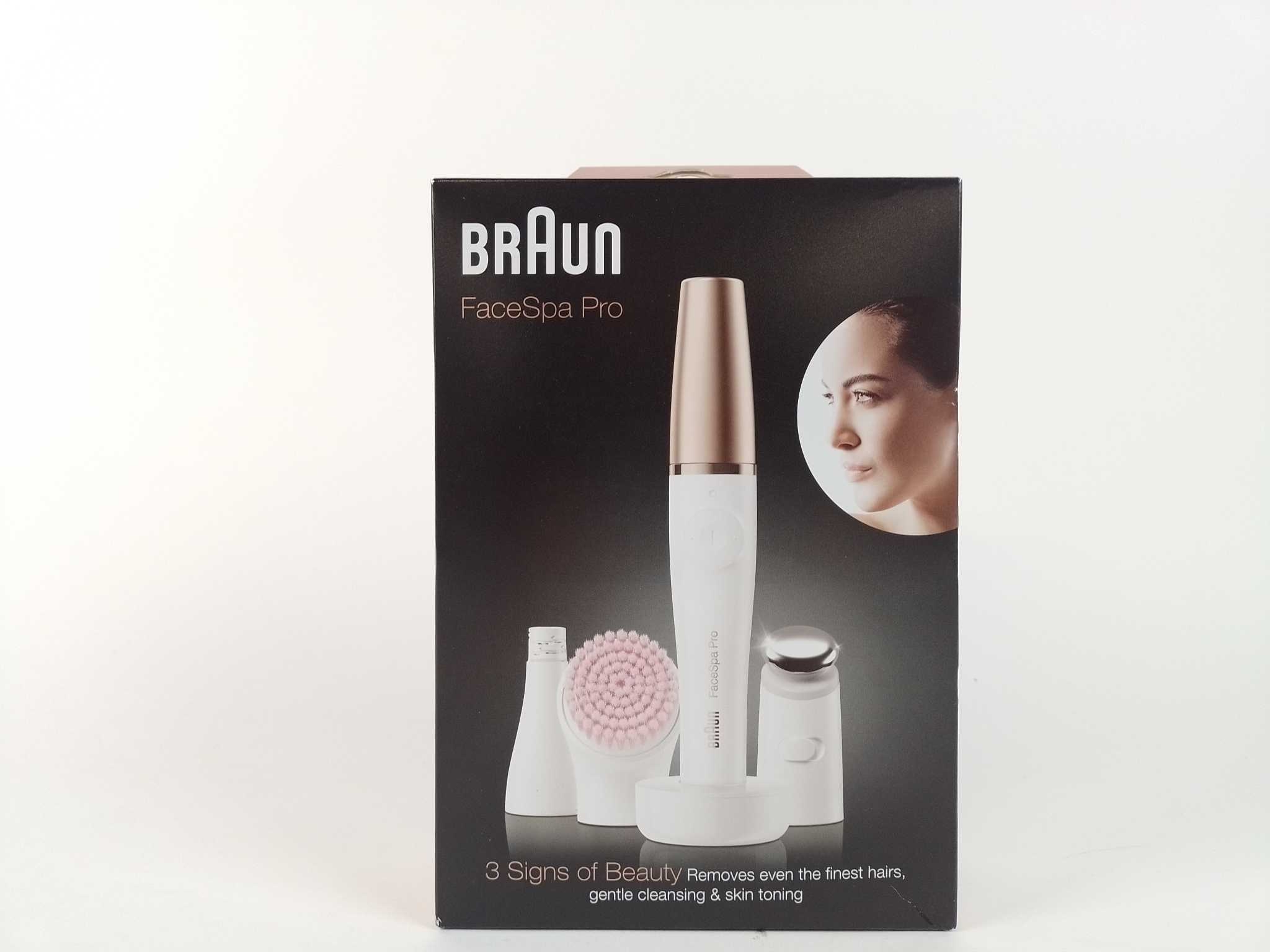 Braun Gezichtsepilator FaceSpa Pro 912 - Wit/Brons. Verzorg je gezicht thuis met de Braun FaceSpa Pro 912: een 3-in-1 apparaat voor gezichtsepilatie, reiniging en huidtoning. Het epileerhoofd met 10 micro-openingen verwijdert zelfs zeer korte haartjes van
