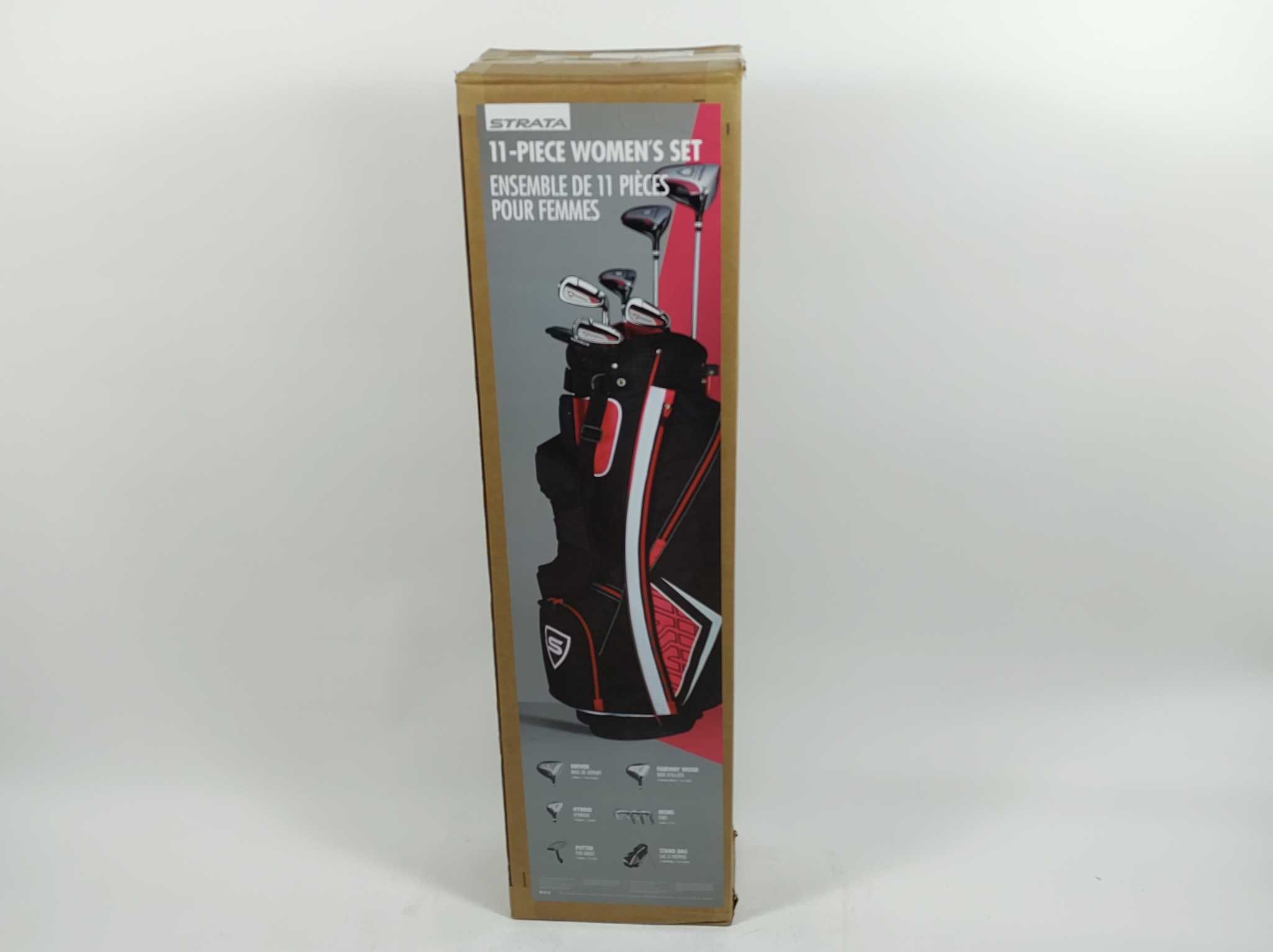 Callaway Golfset Strata 11-delig - Dames. De Callaway Strata 11-delige dames golfset (rechtshandig) levert direct prestaties van tee tot green. Inclusief driver, 5-wood, 5-hybride, 7- en 9-ijzer, sandwedge, putter, draagtas en 3 headcovers. Vergevingsgezi
