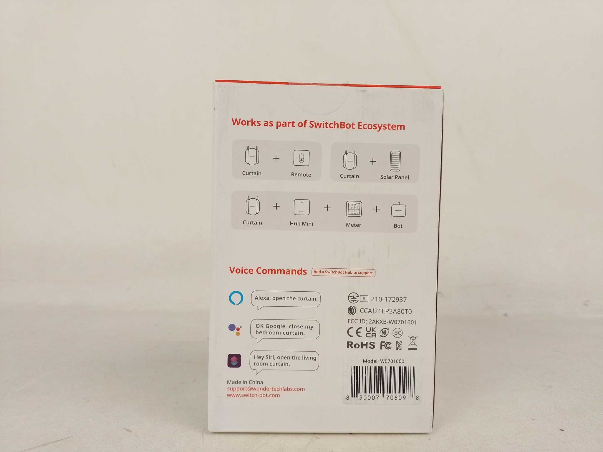 SwitchBot Gordijnmotor Curtain 3 - I-Rail. Automatiseer je gordijnen met SwitchBot Curtain I-Rail (wit). Binnen 30 seconden geïnstalleerd, geen gereedschap nodig. Fluisterstille motor opent/sluit met app, scènes en schema’s; trek-om-te-starten en lichtdetectie voor natuurlijk wakker worden. Werkt stand-alone via Bluetooth en met hub voor spraakbediening en bediening buitenshuis. Past op rechte I-rails. Inclusief I-rail haken/adapters, USB-C oplaadkabel, bevestigingsclip en handleiding. Energiezuinig, compact en veilig met kinderslot. Ideaal om comfort te verhogen, energie te besparen en je woning slimmer te maken. Compatibel met zonnepaneelaccessoire voor doorlopend laden.