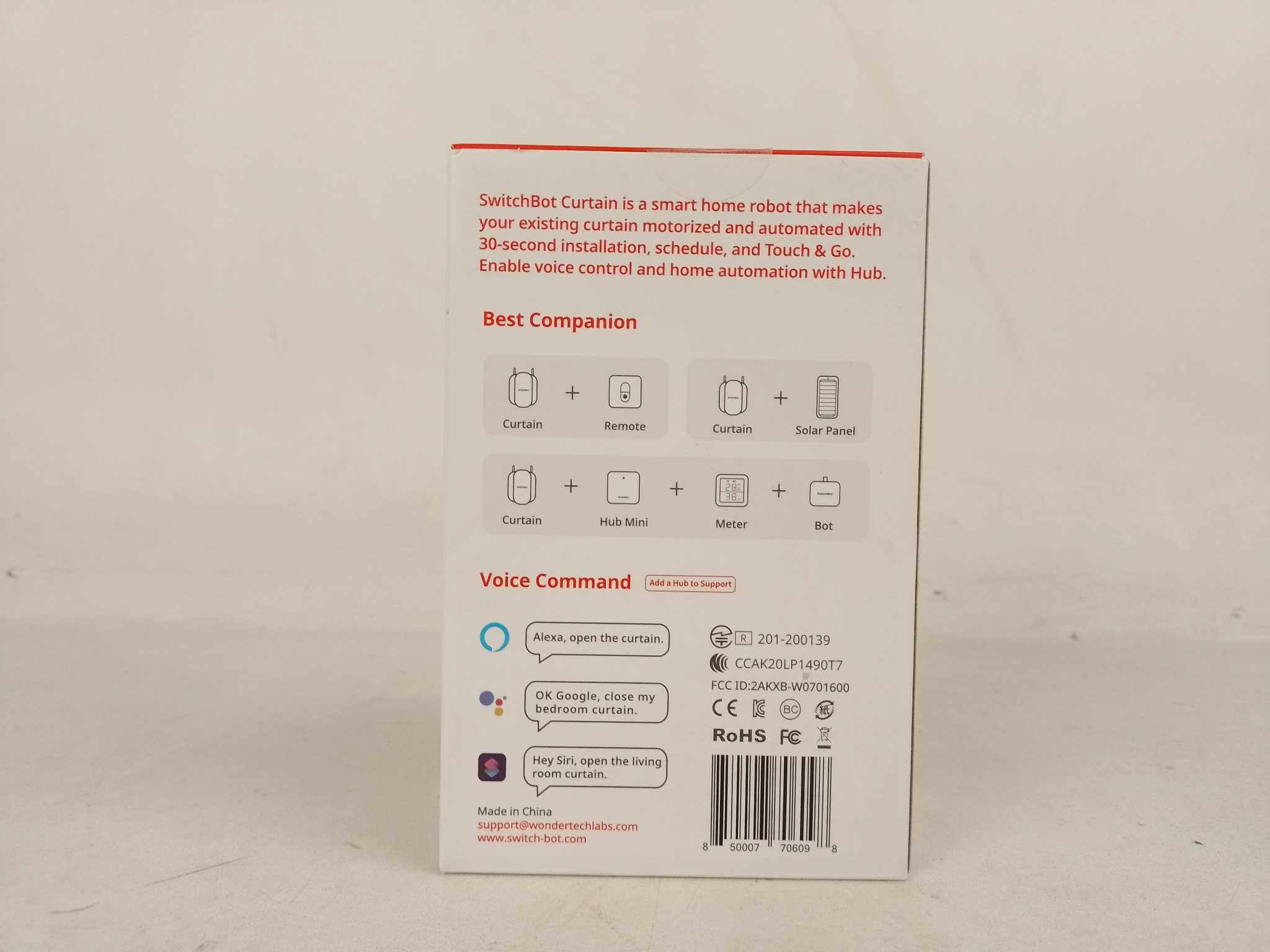 SwitchBot Gordijnmotor Curtain 3 - I-Rail. Automatiseer je gordijnen met SwitchBot Curtain I-Rail (wit). Binnen 30 seconden geïnstalleerd, geen gereedschap nodig. Fluisterstille motor opent/sluit met app, scènes en schema’s; trek-om-te-starten en lichtdetectie voor natuurlijk wakker worden. Werkt stand-alone via Bluetooth en met hub voor spraakbediening en bediening buitenshuis. Past op rechte I-rails. Inclusief I-rail haken/adapters, USB-C oplaadkabel, bevestigingsclip en handleiding. Energiezuinig, compact en veilig met kinderslot. Ideaal om comfort te verhogen, energie te besparen en je woning slimmer te maken. Compatibel met zonnepaneelaccessoire voor doorlopend laden.
