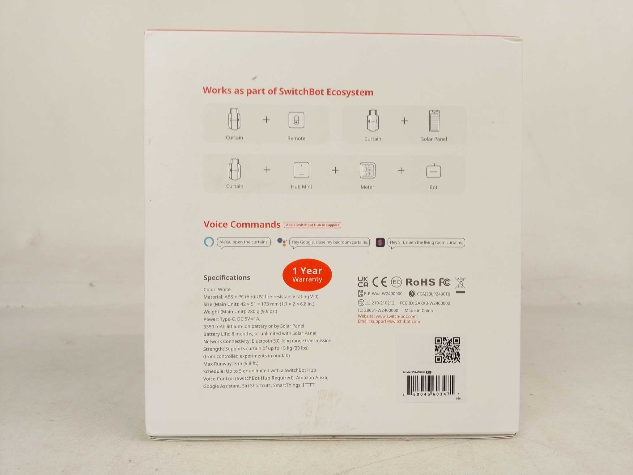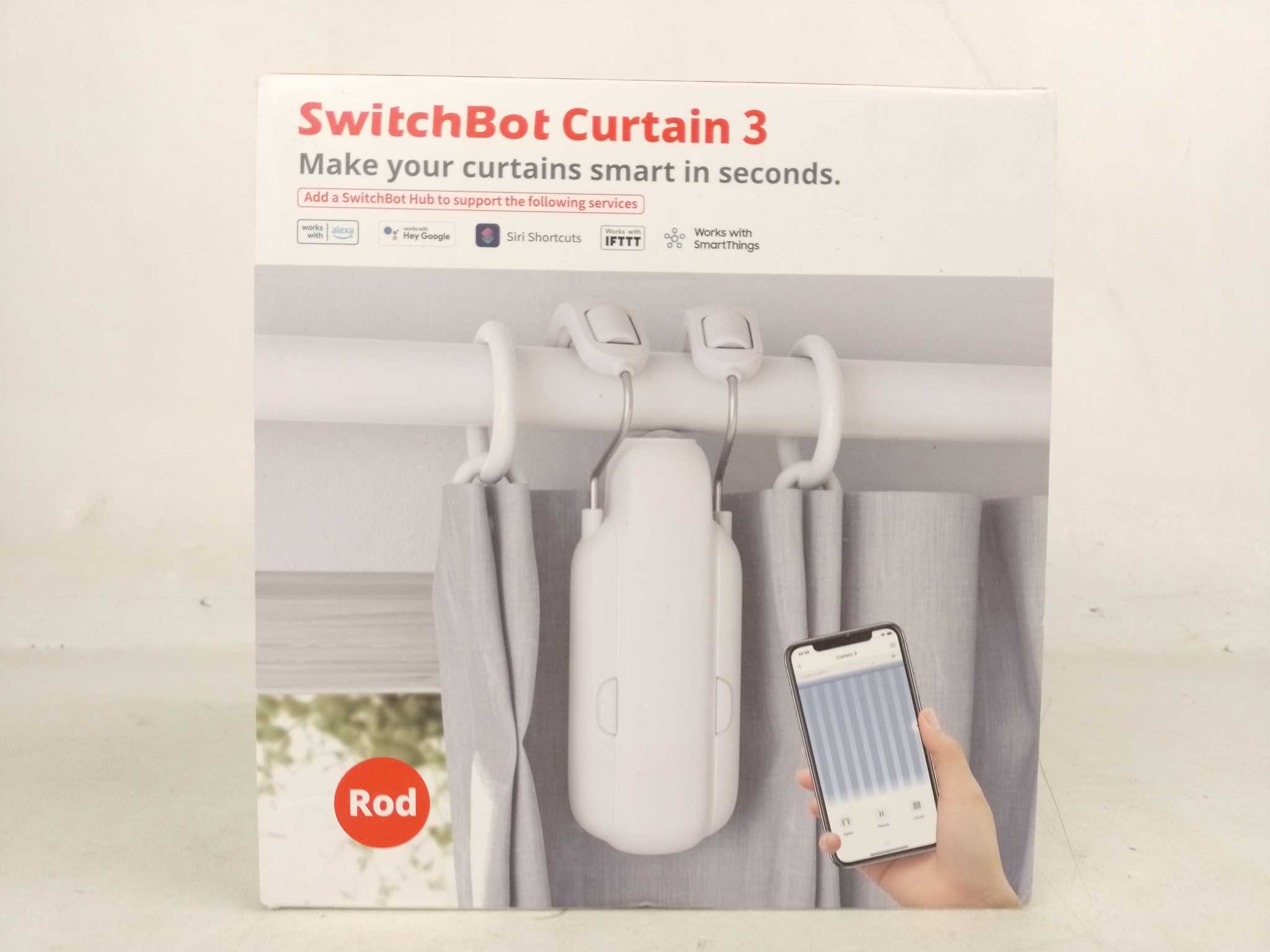 SwitchBot Gordijnmotor Curtain 3 - Rod. De SwitchBot Curtain Rod 3 slimme gordijnmotor maakt je gordijnen moeiteloos automatisch met bediening via Bluetooth, app of spraakassistenten zonder schroeven of gereedschap. Compatibel met roedes van 15–40 mm en dragend tot 15 kg, regelt hij open- en sluitbewegingen tot 3 meter. Voorzien van een krachtige accu tot 8 maanden gebruik of optionele zonnepanelen. Werkt samen met Alexa, Google Assistant, Siri, HomeKit, IFTTT en SmartThings via optionele hub.