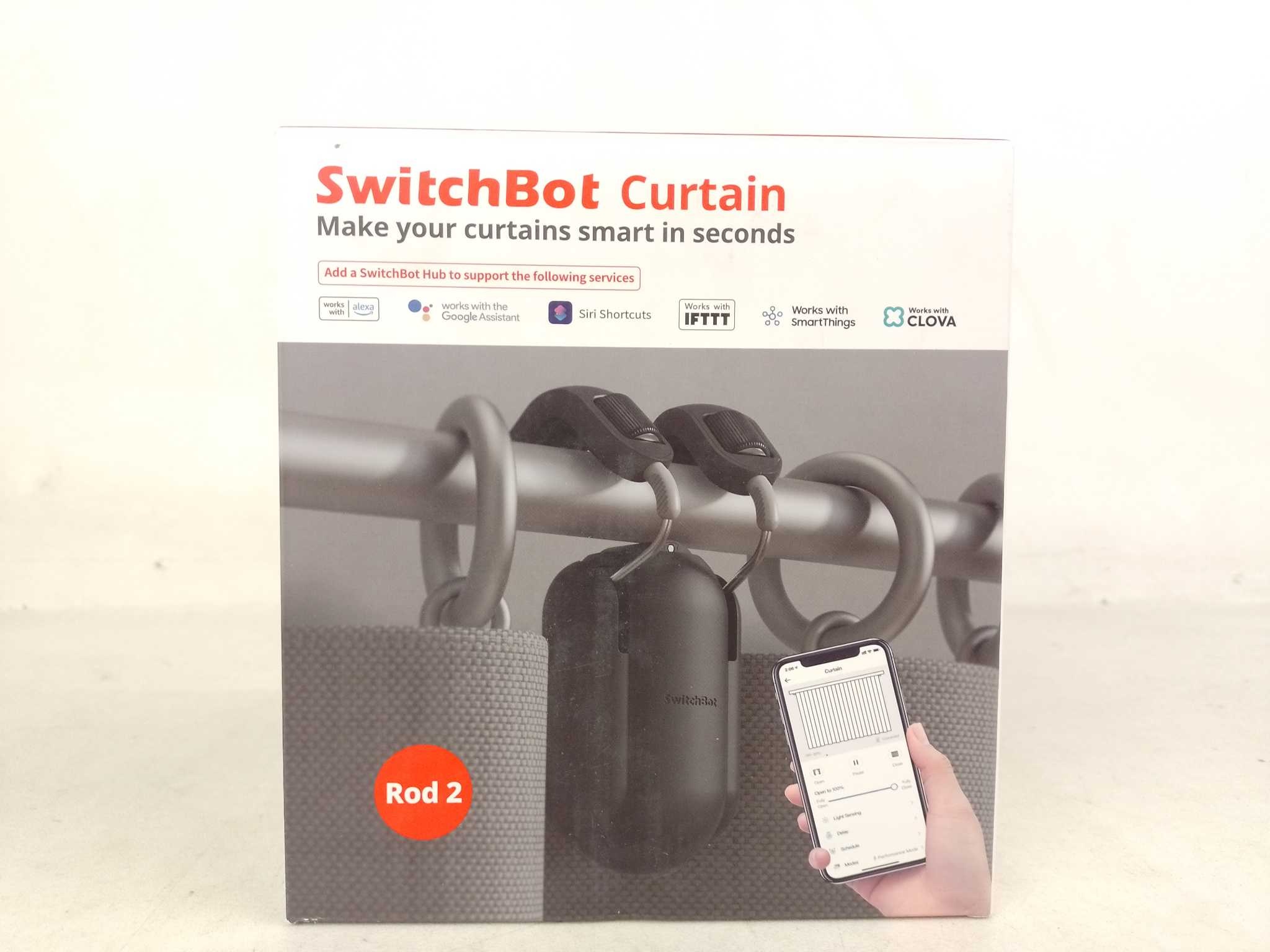 SwitchBot Gordijnmotor Curtain 3 - Rod 2.0 - Zwart. Automatiseer je gordijnen met de SwitchBot Curtain Rod 2 (zwart), speciaal voor ronde gordijnroedes – niet geschikt voor U-rail of I-rail. De stille, krachtige motor opent en sluit soepel via app, schema