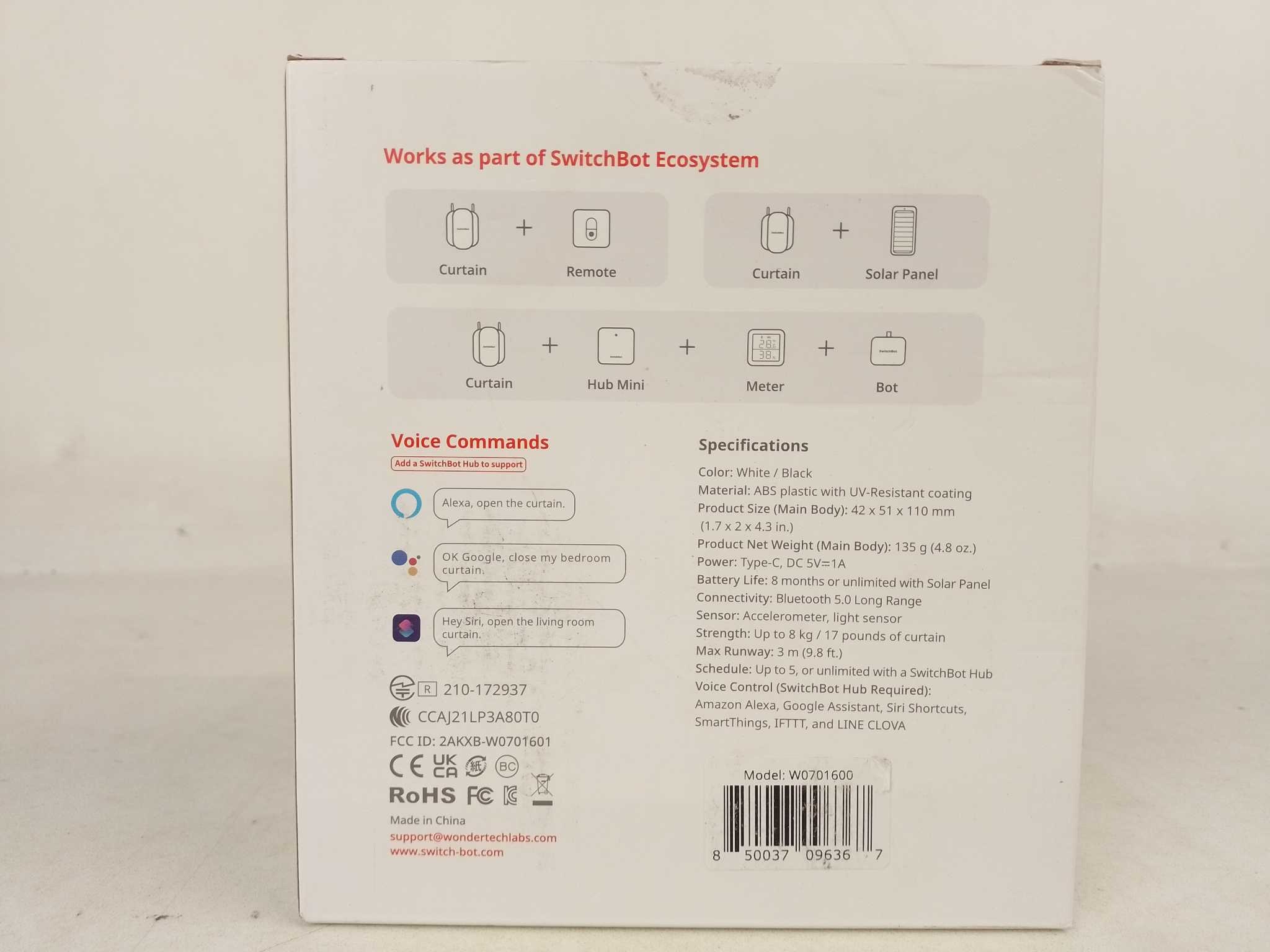 SwitchBot Gordijnmotor Curtain 3 - Rod 2.0 - Zwart. Automatiseer je gordijnen met de SwitchBot Curtain Rod 2 (zwart), speciaal voor ronde gordijnroedes – niet geschikt voor U-rail of I-rail. De stille, krachtige motor opent en sluit soepel via app, schema’s en scènes; trek-om-te-starten en lichtdetectie maken bediening intuïtief. Werkt stand-alone via Bluetooth; met hub voeg je spraakbediening en bediening buitenshuis toe. Inclusief roede-adapters voor diverse diameters, bevestigingsclip en USB-C oplaadkabel. Compact, energiezuinig en geschikt voor zware stoffen. Optioneel zonnepaneelaccessoire voor continu laden. Perfect voor dagelijks comfort en energiebesparing.