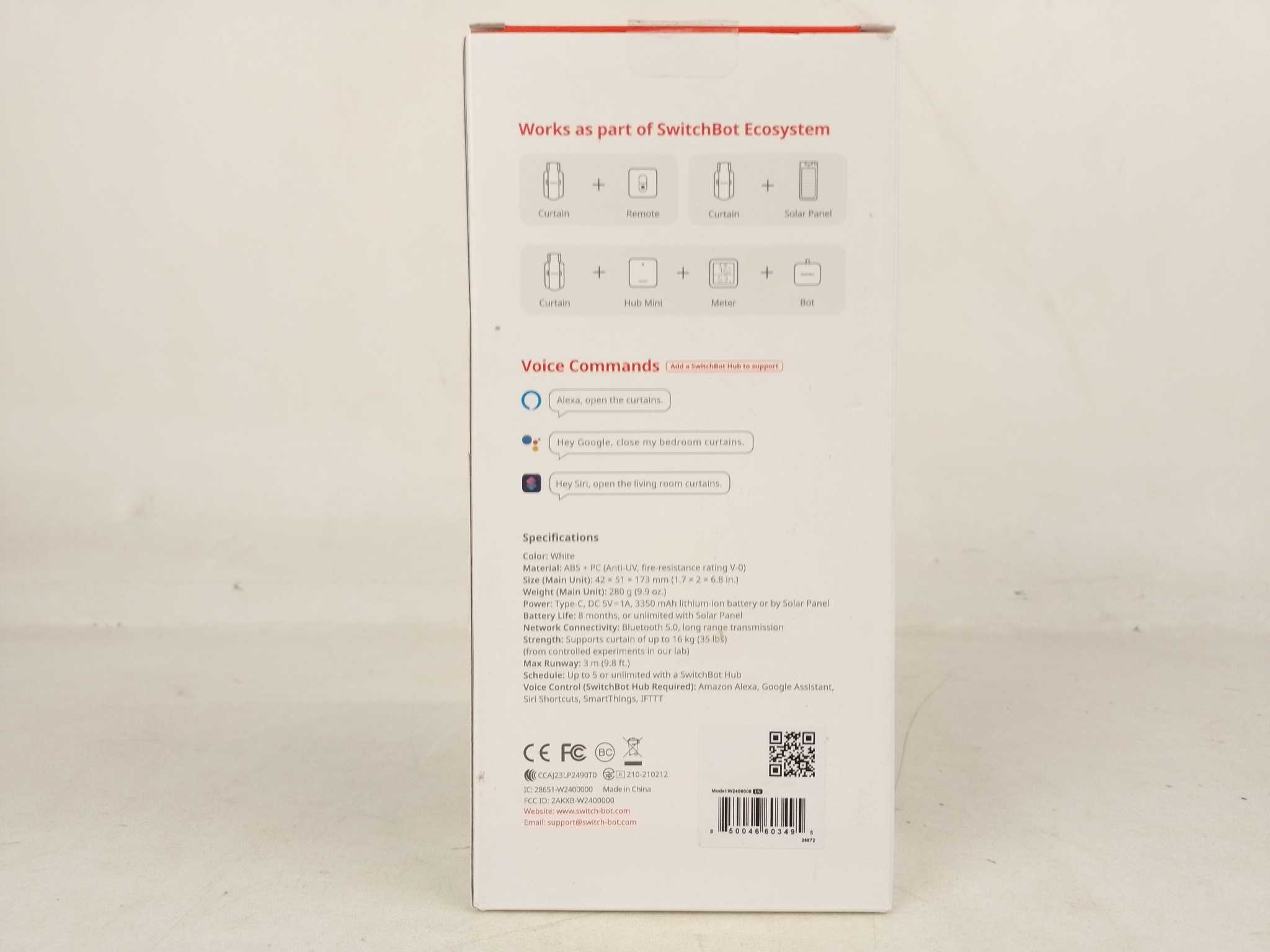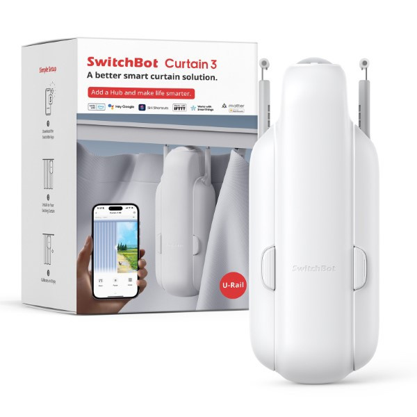 SwitchBot Gordijnmotor Curtain 3 - U-Rail. Automatiseer je gordijnen met de SwitchBot Curtain 3 voor U-rail. Binnen 30 seconden geïnstalleerd, fluisterstil en krachtig genoeg voor zware stoffen. Bediening via app, schema’s, scènes en spraak (met hub) voor echt handsfree wonen. Geavanceerde motor biedt soepel openen/sluiten, lichtdetectie en trek-om-te-starten. Werkt stand-alone via Bluetooth; koppel optioneel aan Hub voor bediening buitenshuis en automatisering. Inclusief U-rail haken, USB-C oplaadkabel en bevestigingsmateriaal. Energiezuinig, discreet ontwerp dat elke ruimte slimmer, comfortabeler en veiliger maakt. Ondersteunt timers, routines en kinderslot voor veiligheid.