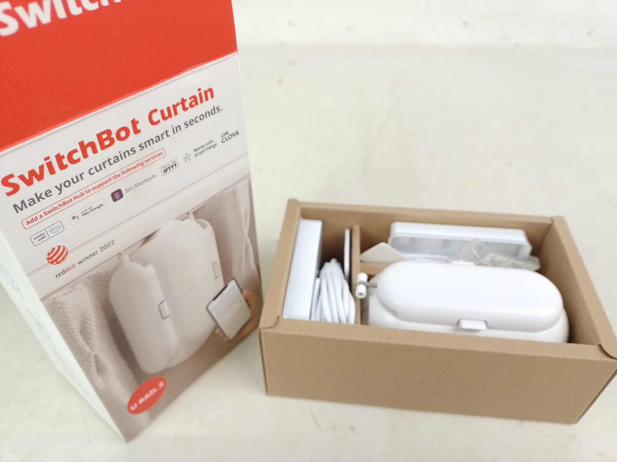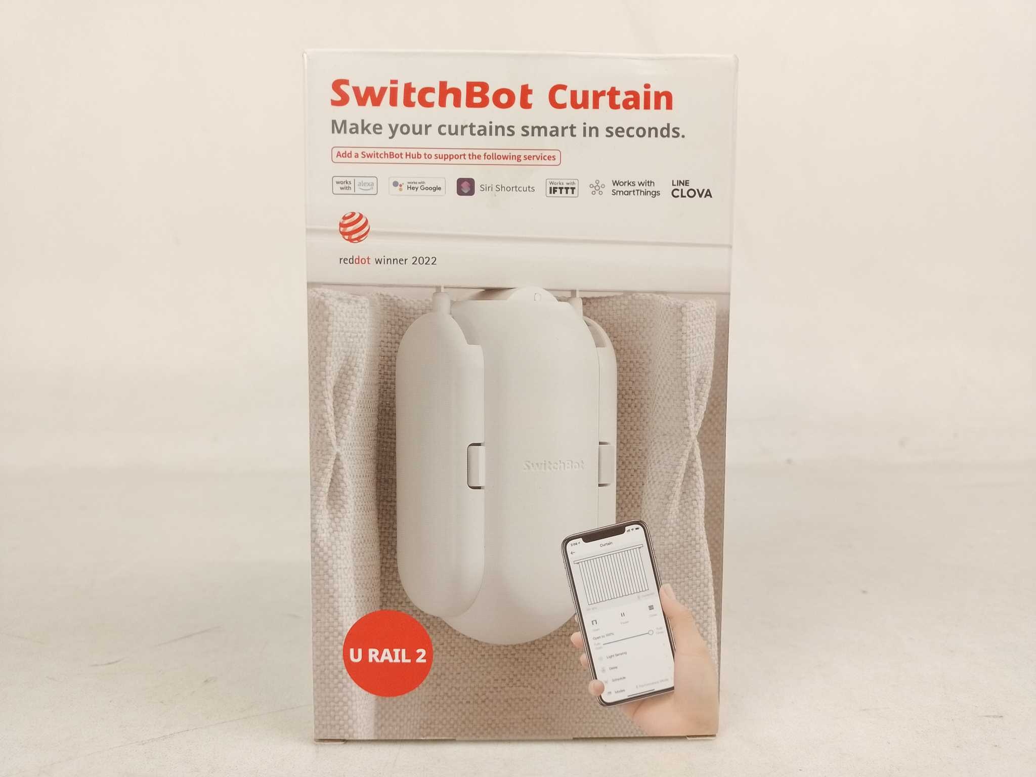 SwitchBot Gordijnmotor Curtain 3 - U-Rail 2. De SwitchBot Curtain U-Rail 2 (wit), specifiek voor U-vormige gordijnrails. Binnen 30 seconden geïnstalleerd, fluisterstil en krachtig voor zwaardere stoffen. Bedien via app, schema’s en scènes; met trek-om-te-