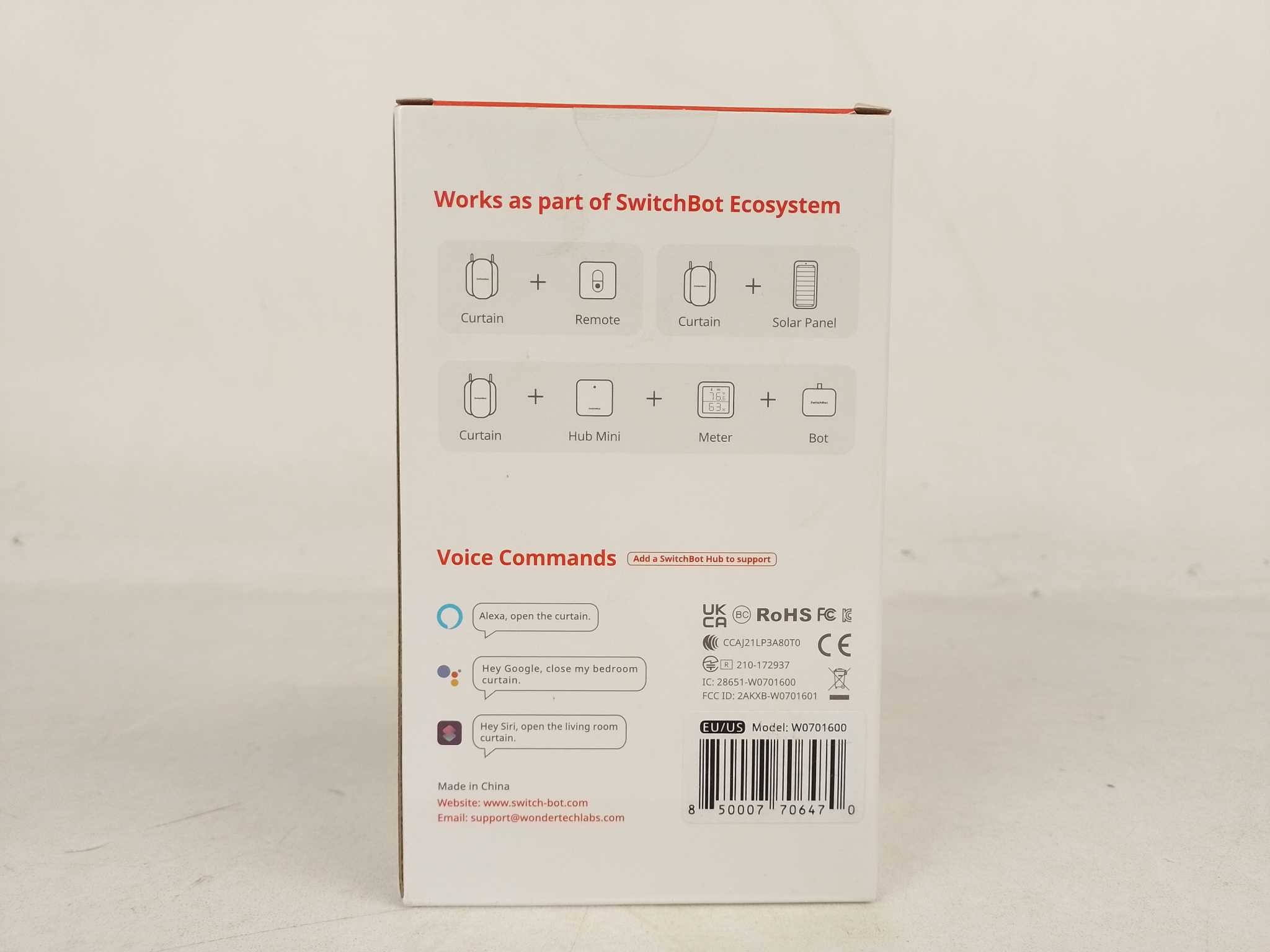 SwitchBot Gordijnmotor Curtain 3 - U-Rail 2. De SwitchBot Curtain U-Rail 2 (wit), specifiek voor U-vormige gordijnrails. Binnen 30 seconden geïnstalleerd, fluisterstil en krachtig voor zwaardere stoffen. Bedien via app, schema’s en scènes; met trek-om-te-starten, lichtdetectie en (met hub) spraakbediening. Werkt op herlaadbare accu (USB-C) en optioneel zonnepaneel. Inclusief U-rail-adapters/wieltjes, bevestigingsclip en USB-C-kabel. Ideaal voor comfort en energiebesparing: open bij zonsopkomst, sluit bij hitte of vertrek. Ondersteunt multiroom-routines en integratie met Alexa, Google en Apple HomeKit.