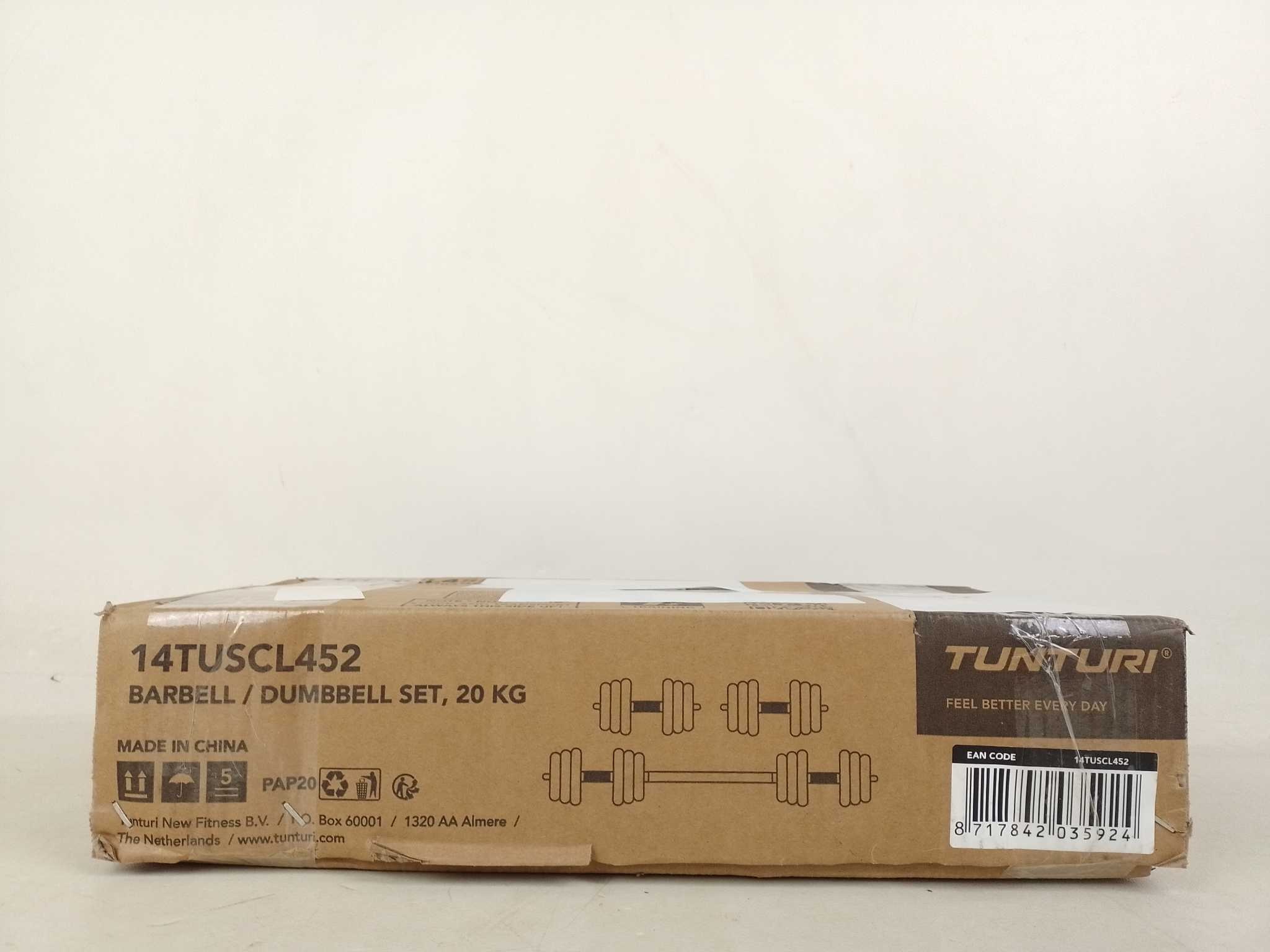 Tunturi Halter en Dumbells Set - 20 kg. De Tunturi halter- en dumbbellset van 20 kg biedt een compacte krachttrainingservaring dankzij de slimme 3-in-1 opzet: twee dumbbells en een barbell in één. Met een stevige, verchroomde tussenstang verander je snel tussen oefenen met dumbbells (tot 9 kg per stuk) en barbell (tot 20 kg). De antislip handgrepen garanderen grip tijdens elke training. Licht op te bergen, veelzijdig inzetbaar en efficiënt in beperkte ruimte.