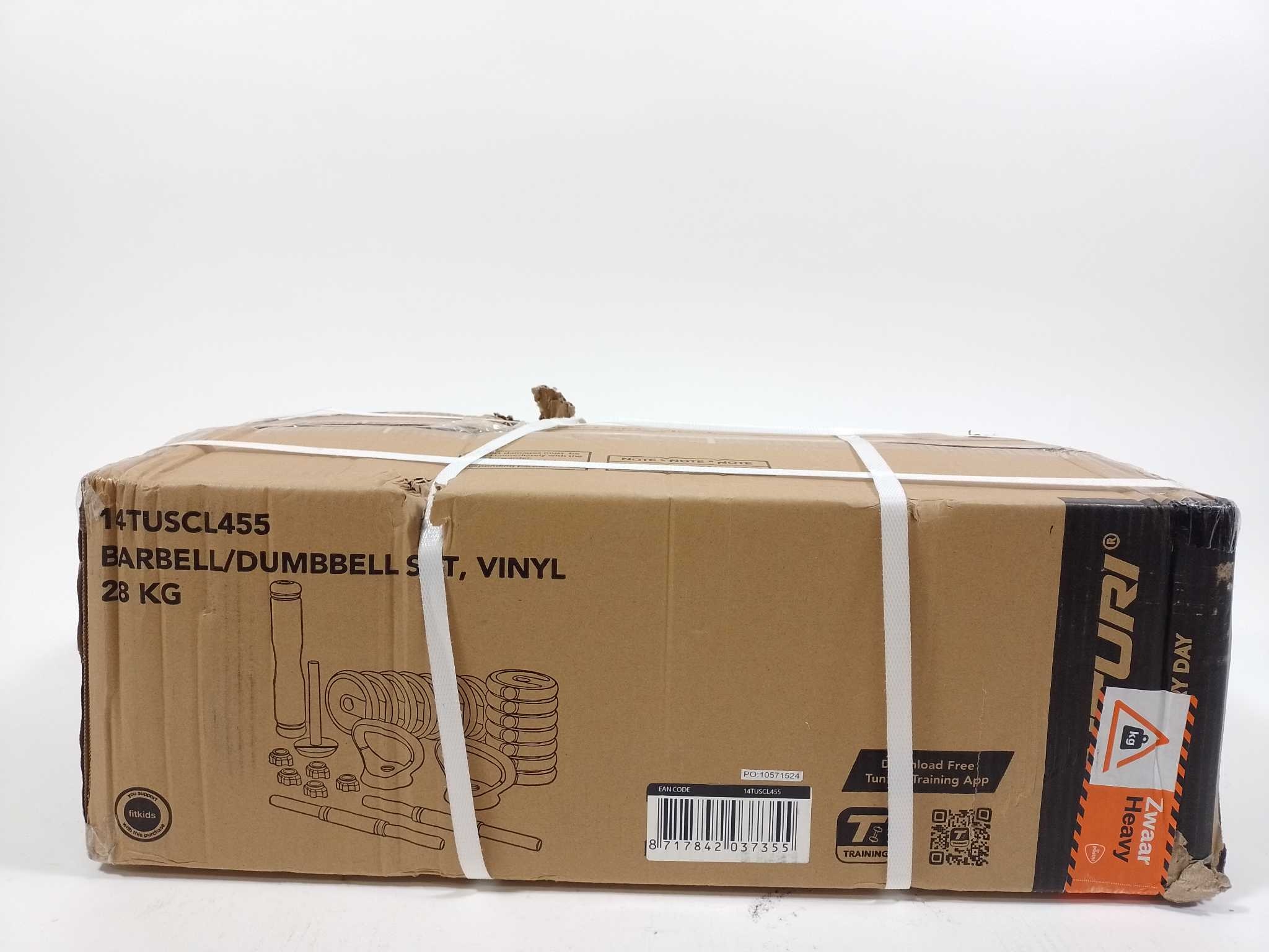 Tunturi Halterset & Dumbbels - 28kg. Train thuis veelzijdig met de Tunturi Vinyl Halter- & Dumbbell set 28 kg. Bouw in minuten twee dumbbells, een halterstang, kettlebell, push-up steunen of strength bag voor een complete full-body workout. De vinyl schijven zijn vloer- en geluidsvriendelijk, de 30 mm stangen hebben antislip grip en stevige schroefsluitingen voor veilig trainen. Met veel gewichtsstappen wissel je eenvoudig tussen kracht, uithoudingsvermogen en circuittraining. Inclusief stangen, verbindingsstuk, kettlebell-pin, handgrepen en schijven. Ideaal voor beginners en gevorderden, compact op te bergen in ruimtes.