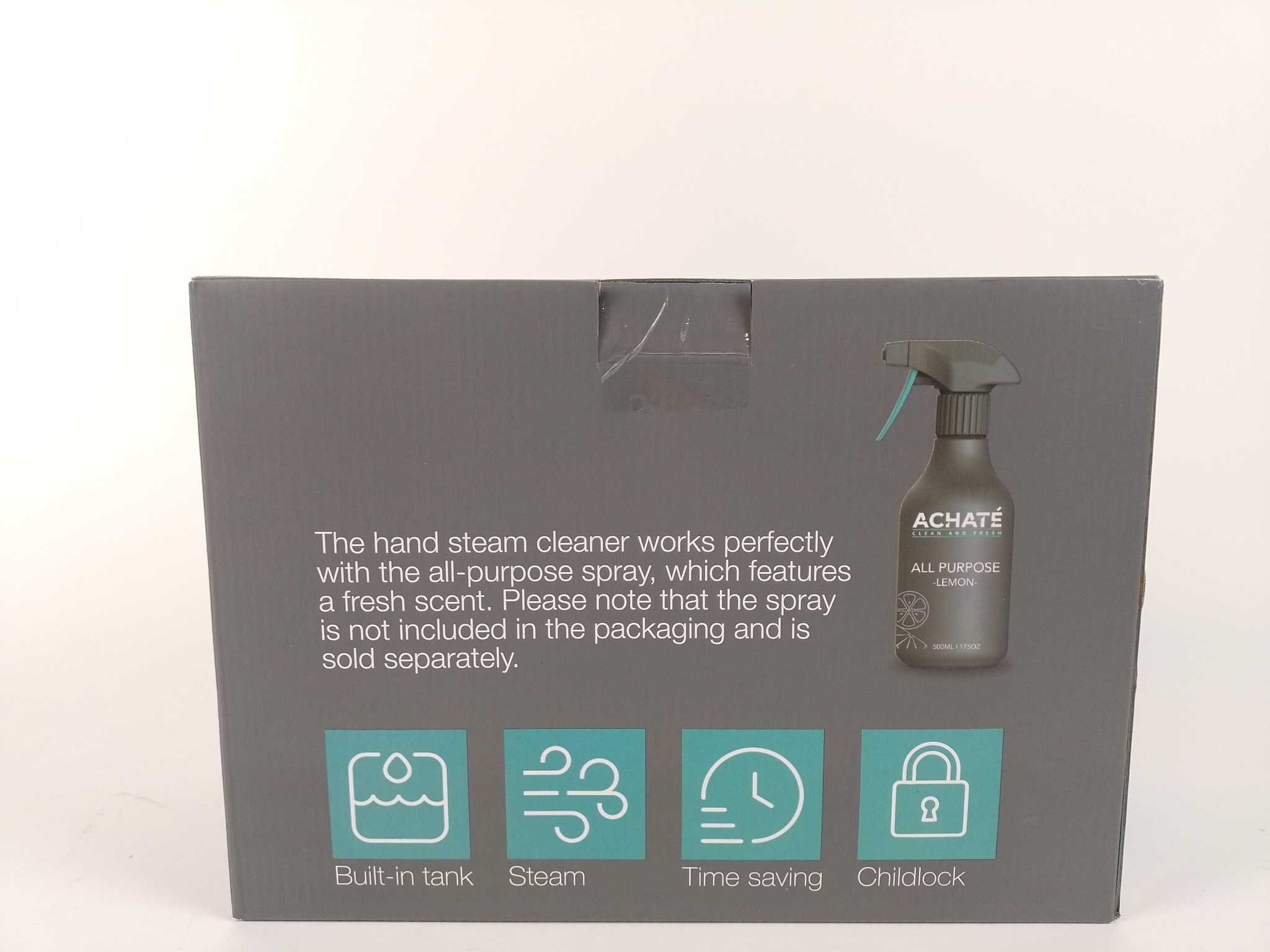 Achaté Handstoomreiniger 12-in-1. De Achaté 12‑in‑1 handstoomreiniger is een krachtige alleskunner die stomen, vieze vlekken verwijderen, meubels opfrissen én kleding stomen combineert. Met een waterreservoir van 0,45 L is hij binnen 60 seconden op temper