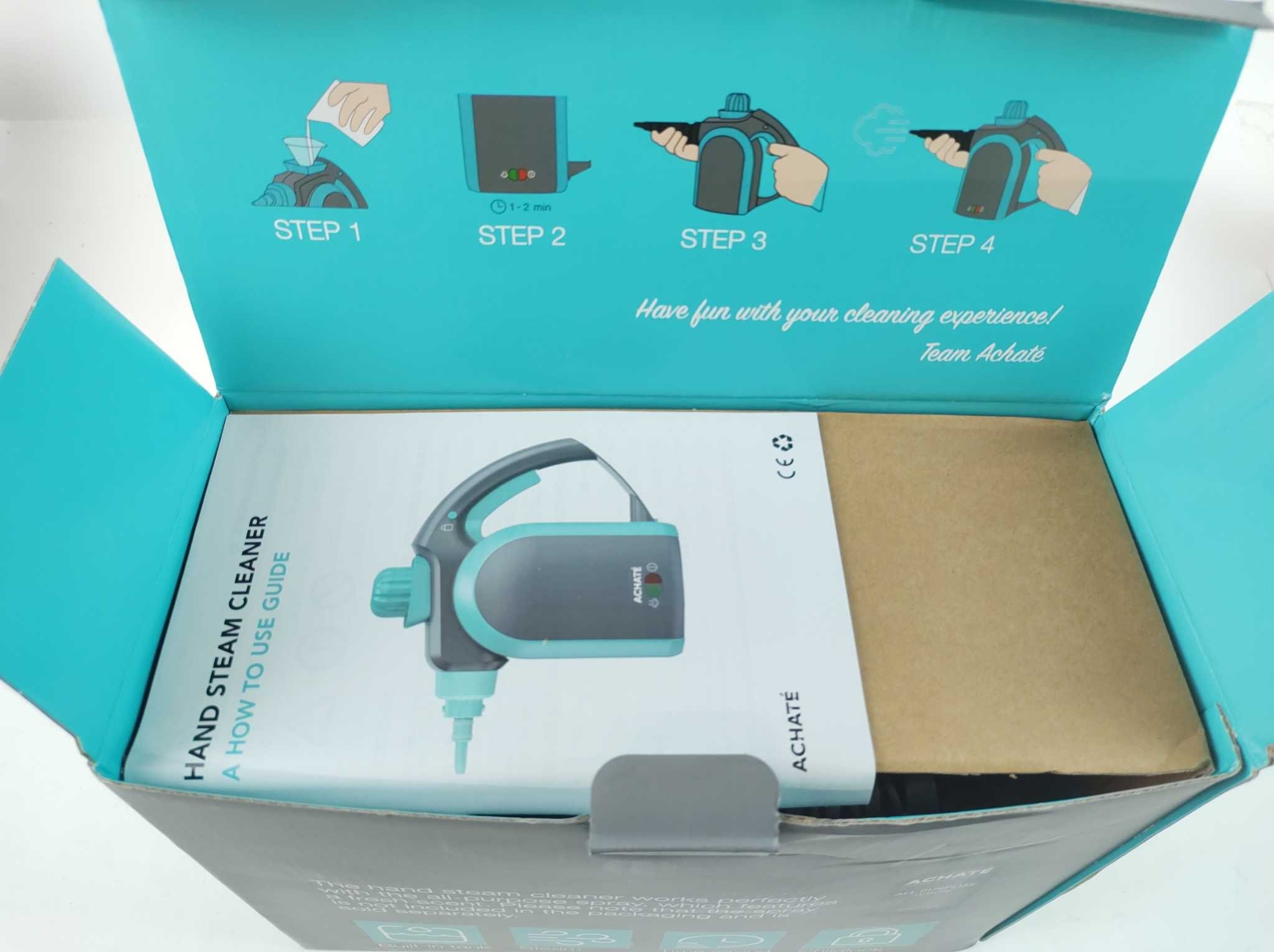 Achaté Handstoomreiniger 12-in-1. De Achaté 12‑in‑1 handstoomreiniger is een krachtige alleskunner die stomen, vieze vlekken verwijderen, meubels opfrissen én kleding stomen combineert. Met een waterreservoir van 0,45 L is hij binnen 60 seconden op temperatuur, en met 12 meegeleverde opzetstukken reinig je moeiteloos van voegen tot tapijt, ruiten, meubels en textiel. Veilig en gebruiksvriendelijk dankzij het lichte ontwerp, kinderbeveiliging en milieuvriendelijke stoomreiniging – zonder chemische middelen.