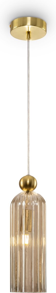Maytoni Hanglamp Antic Cognac - Ø10 cm. De Maytoni Antic hanglamp MOD302PL-01CG voegt warme, retro-chique sfeer toe met gegoten cognackleurig glas en messingkleurige details. Slanke cilinder (Ø10 cm) en in hoogte verstelbaar tot 180 cm voor perfecte plaat
