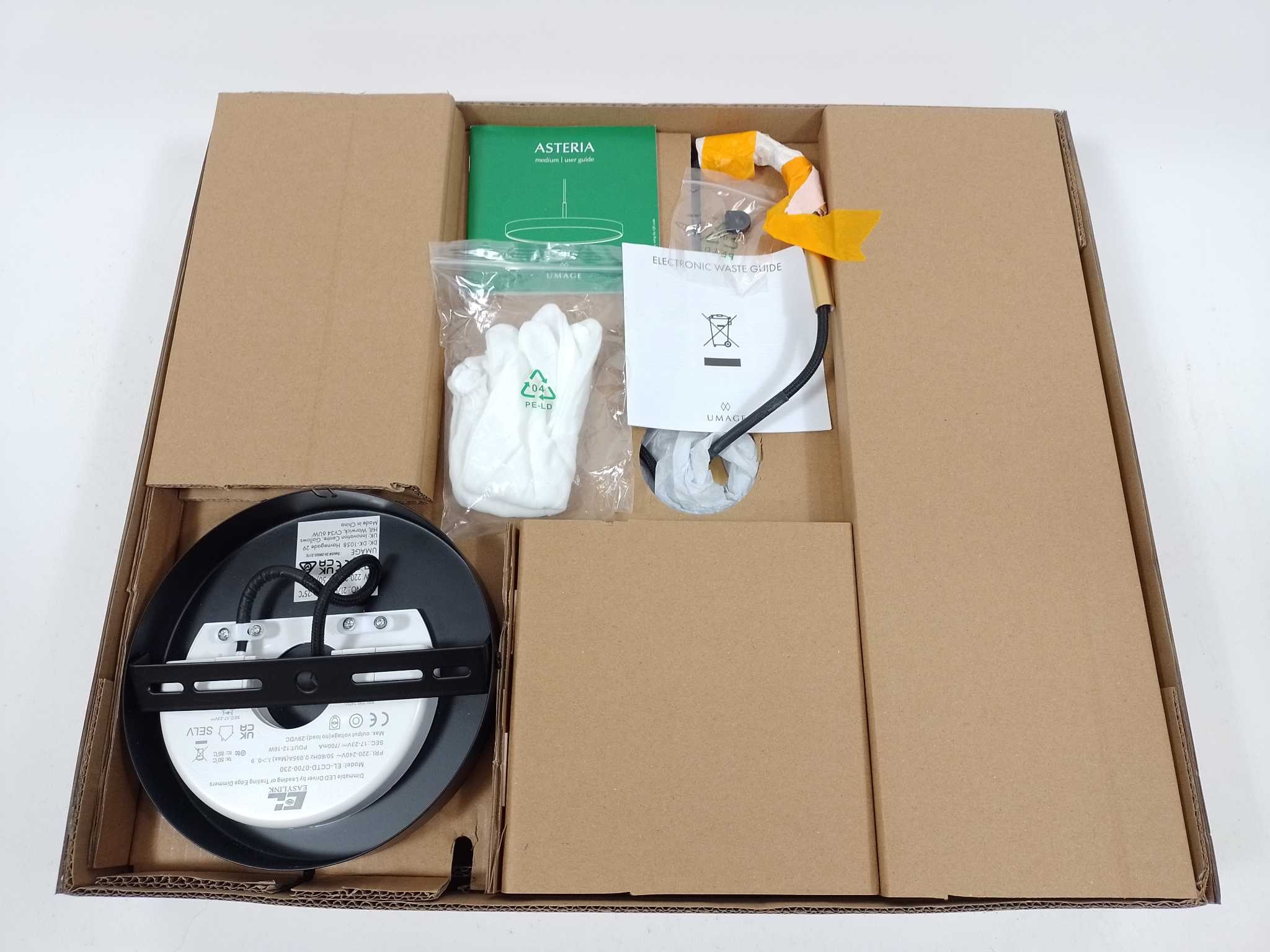 Umage Hanglamp Asteria - ø 43 cm - Wit/Messing. De Umage Asteria hanglamp combineert strak Scandinavisch design met sfeervolle, functionele verlichting voor eettafel, woonkamer of kantoor. Deze stijlvolle hanglamp in parelwit met messing details heeft een diameter van 43 cm en beschikt over geïntegreerde LED-verlichting voor een modern, egaal lichtbeeld. Dankzij de dimbare functie creëer je eenvoudig de juiste sfeer op elk moment. Het slanke ontwerp, de hoogwaardige afwerking en de lange textielkabel maken deze designlamp perfect voor wie luxe, eenvoud en tijdloze uitstraling in huis graag wil halen.