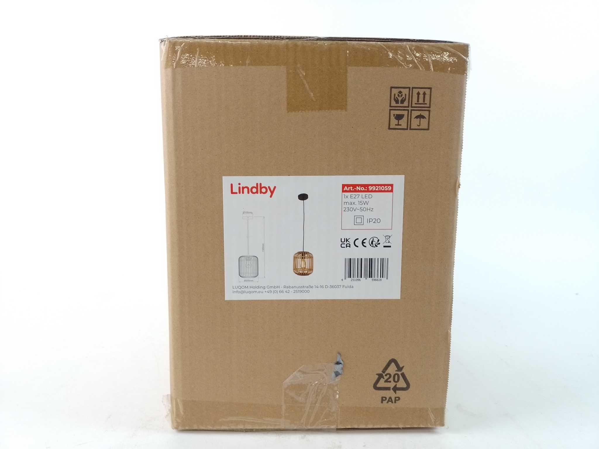 Lindby Hanglamp Canyana - Rotan. Breng natuurlijke sfeer in huis met de Lindby Canyana hanglamp van rotan. De cilindervormige kap (Ø 22 cm, hoogte 25 cm) filtert het licht door openingen en creëert warme, speelse schaduwpatronen boven eettafel of in de woonkamer. Met 1 lichtpunt en E27-fitting kies je eenvoudig een decoratieve filamentlamp tot 40 W voor extra gezelligheid. De neutrale natureltint past bij boho, Scandinavisch en modern. Lichtbron niet inbegrepen, voor binnengebruik (IP20). Het lichte ontwerp van rotan en metaal hangt aan het plafond.