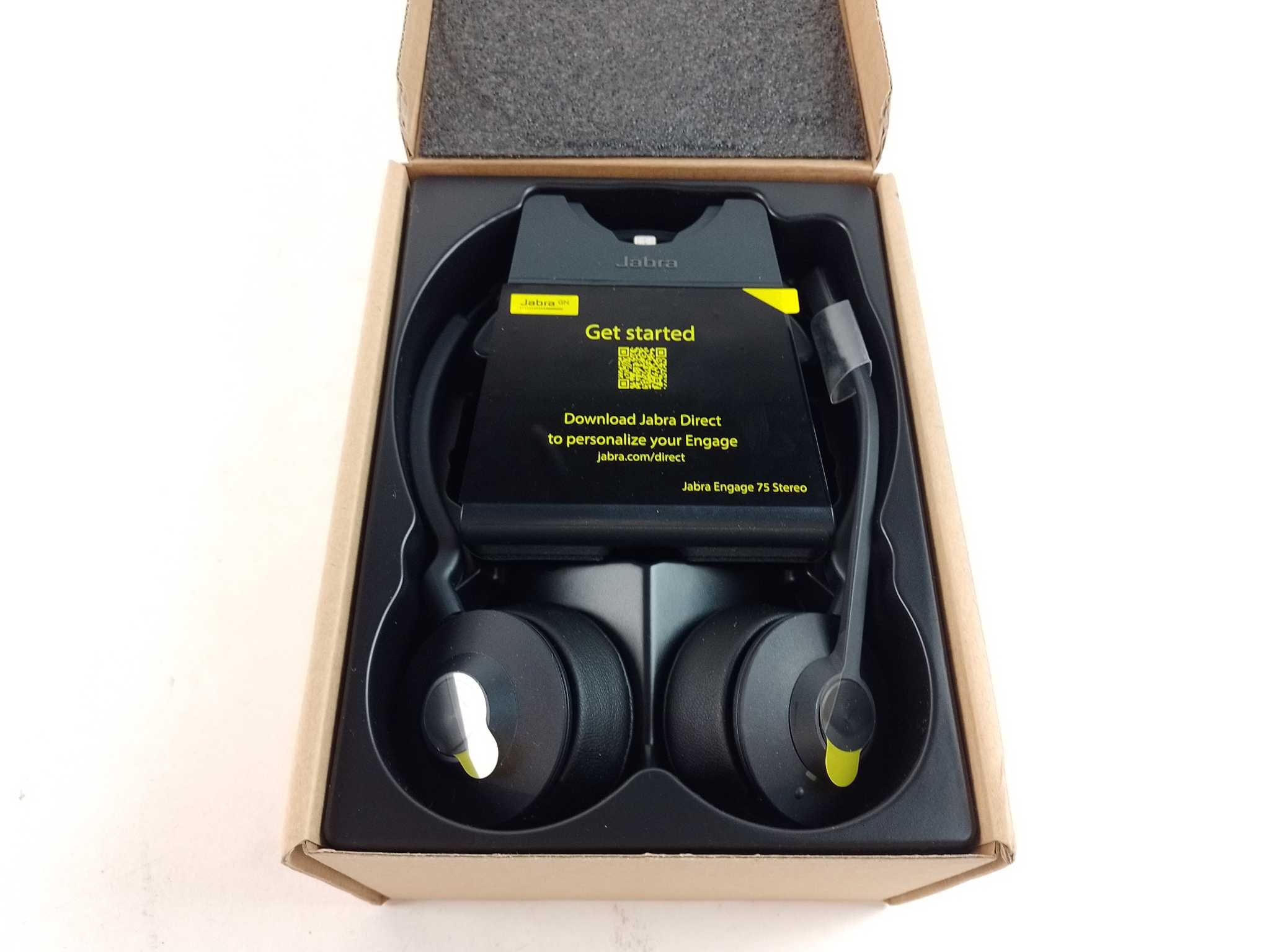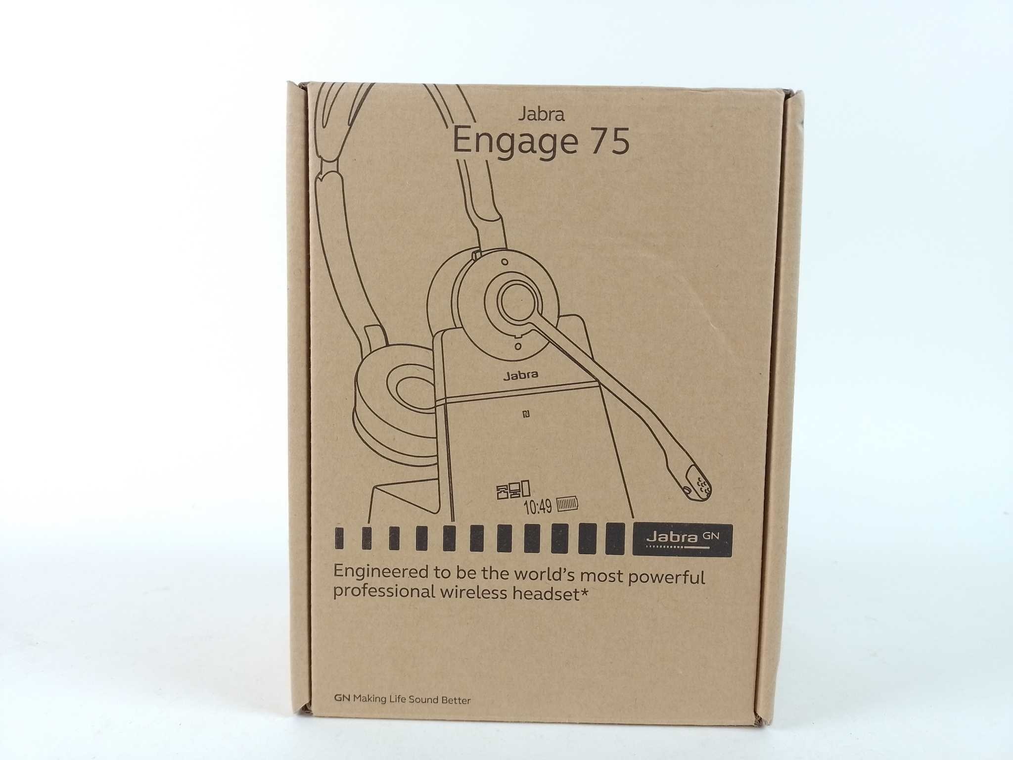 Jabra Headset Engage 75 Stereo - Zwart. De Jabra Engage 75 Stereo is een professionele DECT-headset voor kantoor en thuiswerken. Kraakheldere gesprekken met noise-cancelling microfoon en geïntegreerd busylight. Draadloos bereik tot 150 m en tot 13 uur spreektijd; koppelt tot vijf apparaten (pc, bureautelefoon, mobiel) voor naadloos schakelen. Comfortabel on-ear design met intuïtieve knoppen en snel laden. Inclusief oplaadbasis, USB-kabel en netadapter. Ideaal voor UC-platformen, callcenters en hybride werken: veilig, storingsvrij en superstabiel—maximale productiviteit zonder kabels, de hele dag door.