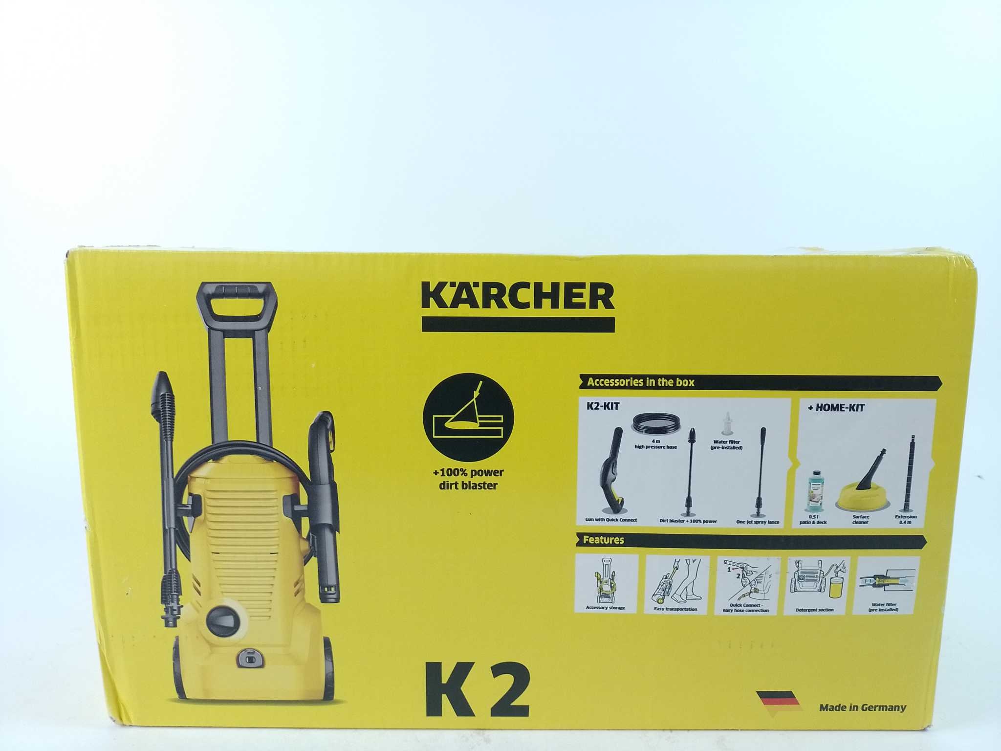 Kärcher Hogedrukreiniger K2 Premium Home. De Kärcher K 2 Premium Home hogedrukreiniger is ideaal voor lichte schoonmaakklussen rond het huis. Met 110 bar werkdruk, 360 liter/uur wateropbrengst en een oppervlakcapaciteit van 20 m²/uur verwijder je moeitelo