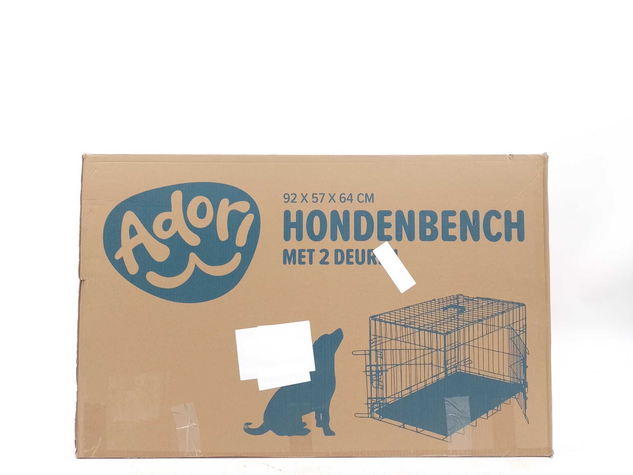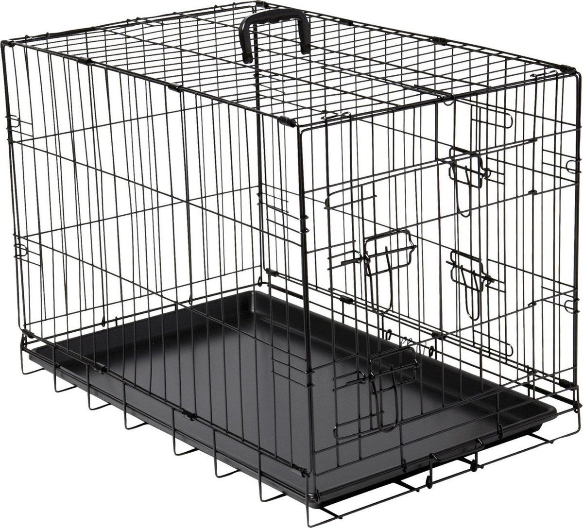 Adori Hondenbench - 92x57x64 cm. Geef je hond een veilige rustplek met de Adori hondenbench 2-deurs in zwart (92×57×64 cm). Het stevige metalen frame met poedercoating is roestvrij en makkelijk schoon te houden. Dankzij twee deuren (voor en zijkant) zet j