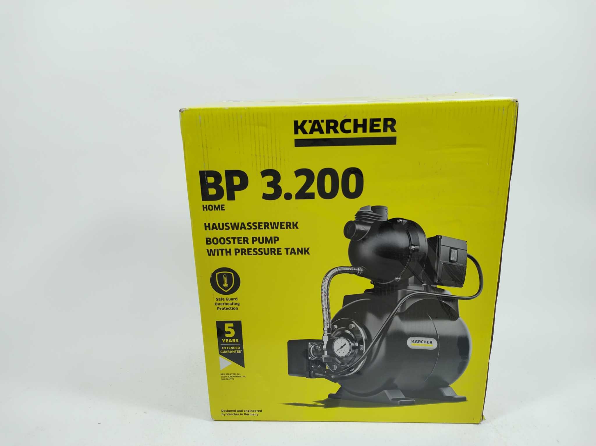 Kärcher Hydrofoorpomp BP 3.200 Home. De Kärcher BP 3.200 Home is een compacte hydrofoorpomp voor huishoudelijk gebruik. Met geïntegreerd 19-liter drukvat, automatische aan/uit-functie en thermische beveiliging levert hij betrouwbaar water voor toilet, was