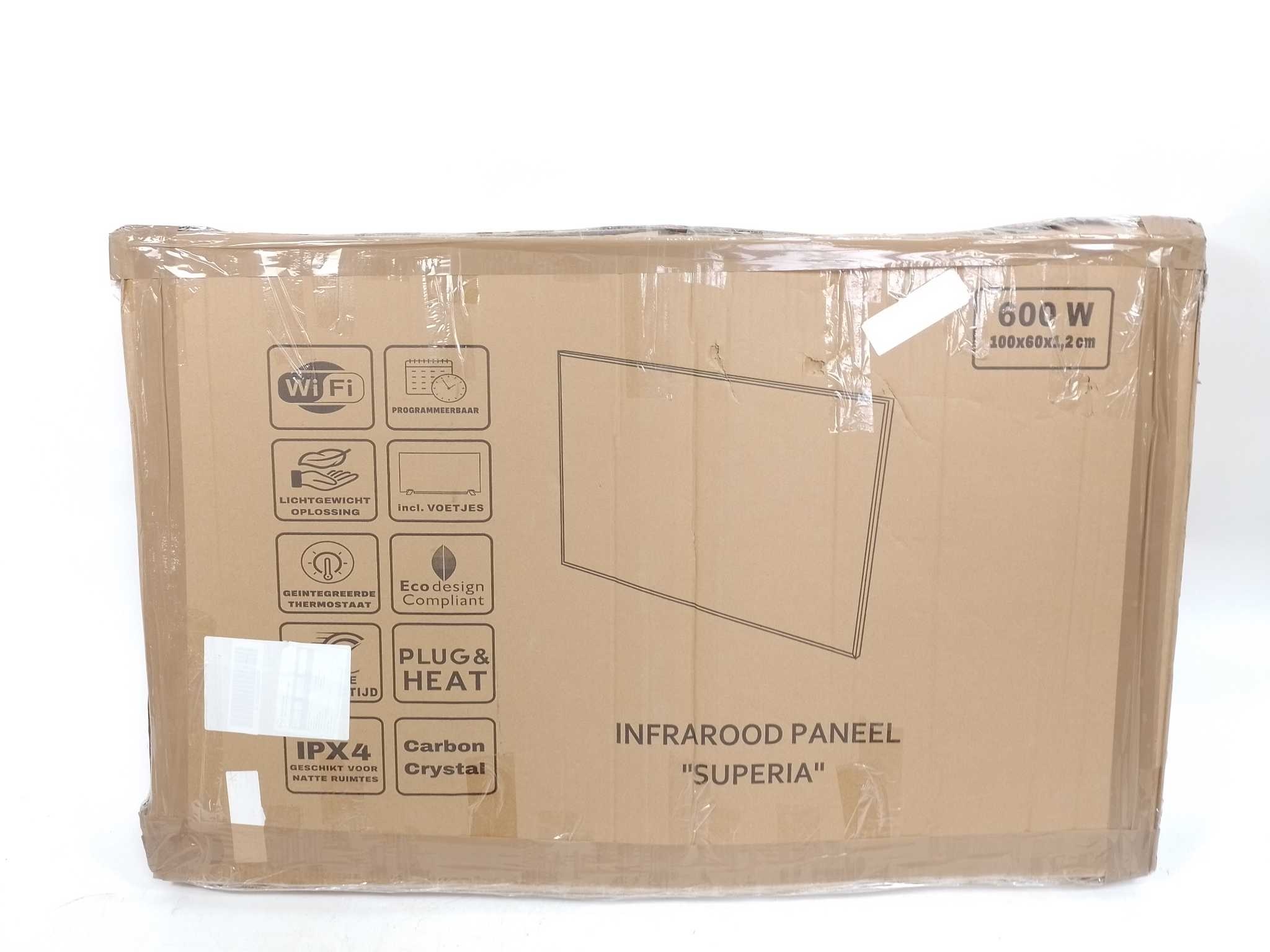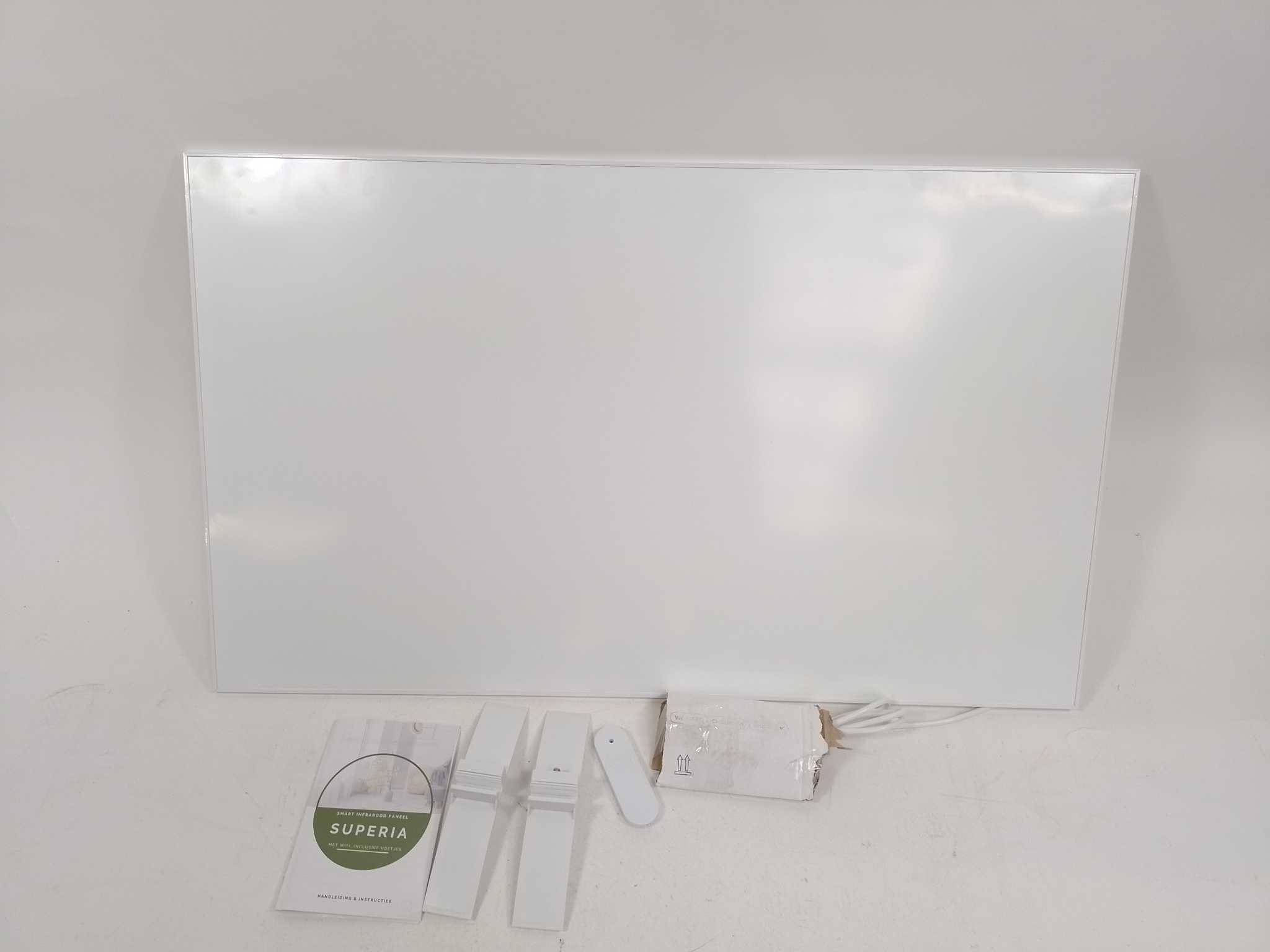 VH Infarood Paneel Superia V3 - 600W - Wit. Het VH Superia V3 infraroodpaneel (60×100 cm, 600 W) geeft razendsnel comfortabele stralingswarmte als bijverwarming in woonkamer, kantoor of badkamer. De geïntegreerde thermostaat meet de ruimtetemperatuur en schakelt automatisch, terwijl wifi-bediening via de Tuya Smart Life app en de meegeleverde afstandsbediening extra gemak biedt. Het slanke aluminium paneel heeft een LED-display, IP24 spatwaterbescherming en thermische oververhittingsbeveiliging. Inclusief voetjes voor vrijstaand gebruik en netsnoer van 150 cm; ook geschikt voor wandmontage. Stil in gebruik en energiezuinig door efficiëntie boven 98% elektriciteit.
