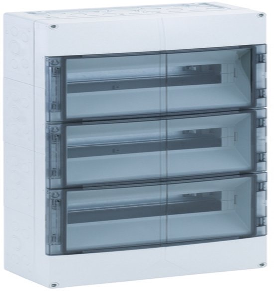 Spelsberg Installatiekast AKe 36 - 142x300x600 mm. De Spelsberg AKe 36 modulaire verdeler is een ruime lege groepenkast voor veilige en overzichtelijke elektrische installaties. Met 3 rijen, capaciteit voor 36 modules en afmetingen van 300 x 600 x 142 mm biedt deze opbouwkast veel installatieruimte. De kunststof behuizing met IP55-bescherming is geschikt voor veeleisende omgevingen, terwijl de transparante deur snelle controle mogelijk maakt. Dankzij DIN-rails, uitbreidbaarheid en degelijk ontwerp is deze verdeler ideaal voor professionele montage in werkplaats, bedrijf of technische ruimte met betrouwbare bescherming en overzicht.