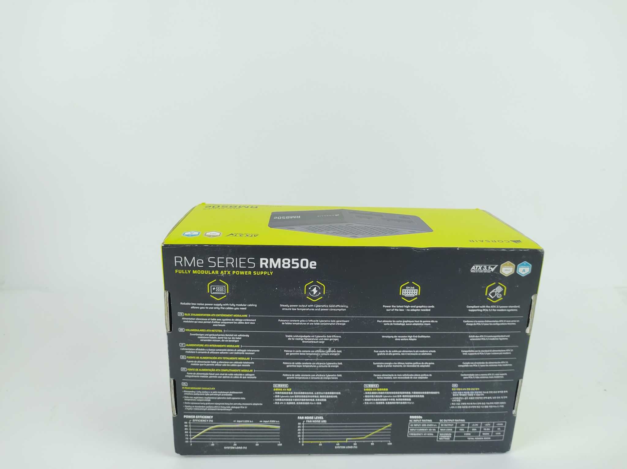 Corsair Interne Voeding RM850e - Zwart. Corsair RM850e 850W voeding is een krachtige en efficiënte keuze voor moderne gaming-pc’s en high-performance systemen. Deze volledig modulaire ATX 3.1 voeding levert stabiele prestaties, ondersteunt PCIe 5.1 en is geschikt voor veeleisende videokaarten en componenten. Dankzij de Cybenetics Gold efficiëntie werk je energiezuinig en betrouwbaar, terwijl het zwarte ontwerp strak oogt in elke behuizing. Ideaal voor wie een stille, toekomstbestendige pc-voeding zoekt met flexibel kabelbeheer, sterke 12V-output en optimale ondersteuning voor dagelijks intensief gebruik en upgrades in huis eenvoudig.