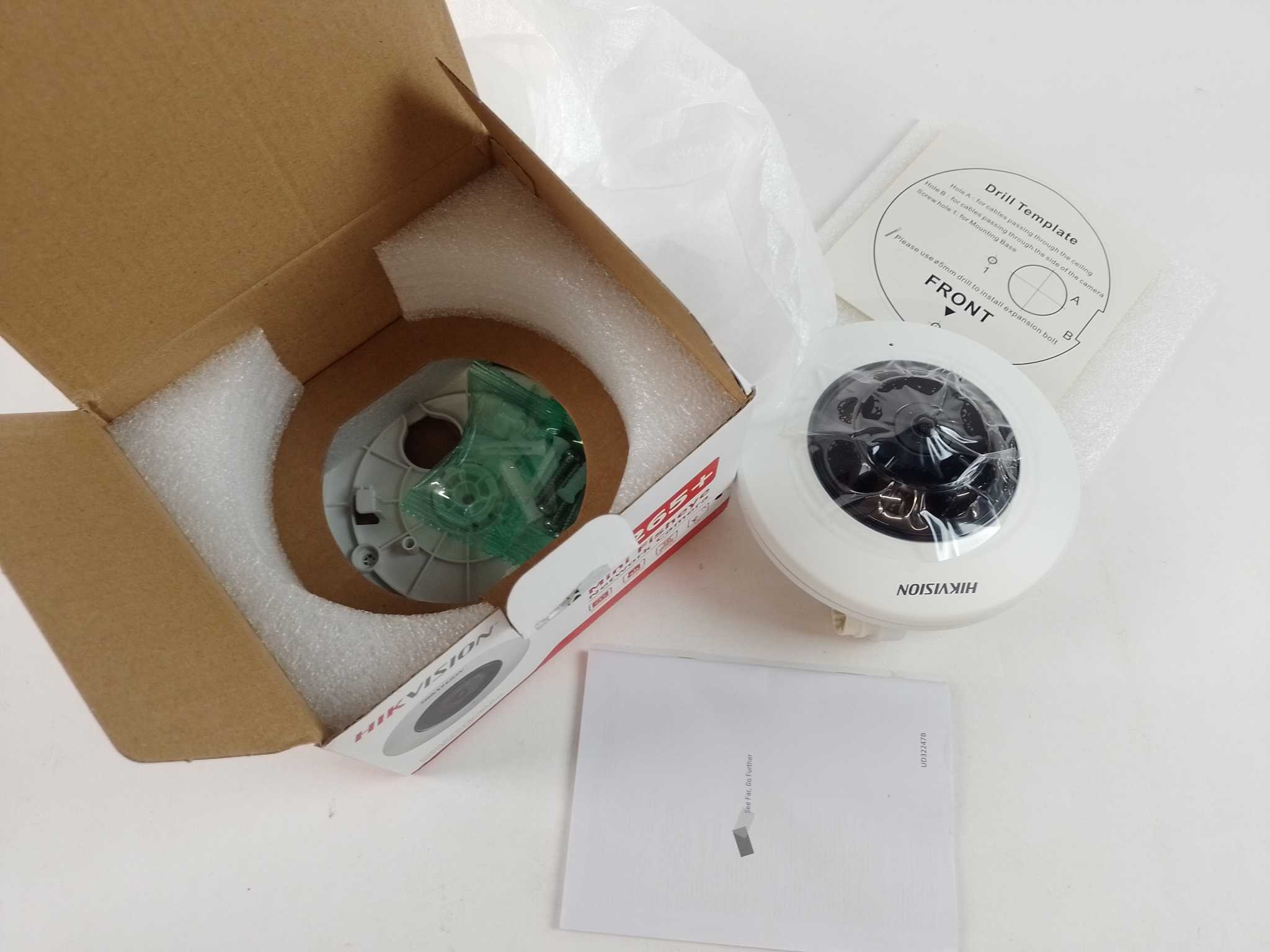 Hikvision IP-Beveiligingscamera 5MP - DS-2CD2955G0-ISU. De Hikvision DS-2CD2955G0-ISU 5MP fisheye beveiligingscamera levert 360° overzicht in één oogopslag. Met 2560x2560 resolutie, 1.05 mm ultragroothoeklens, WDR en H.265+ krijg je scherpe beelden met lage bandbreedte. Ingebouwde microfoon en speaker voor tweerichtingsaudio, microSD-opslag, PoE-voeding en IR-nachtzicht maken installatie eenvoudig. Ideaal voor winkels, kantoren en entrees. Ondersteunt bewegings-/geluidsdetectie, alarm I/O en privacy-masking. Wordt geleverd met plafond/plaat-montage, schroeven en handleiding. Compact design, krachtige analyse en naadloze integratie met NVR voor complete videobewaking.