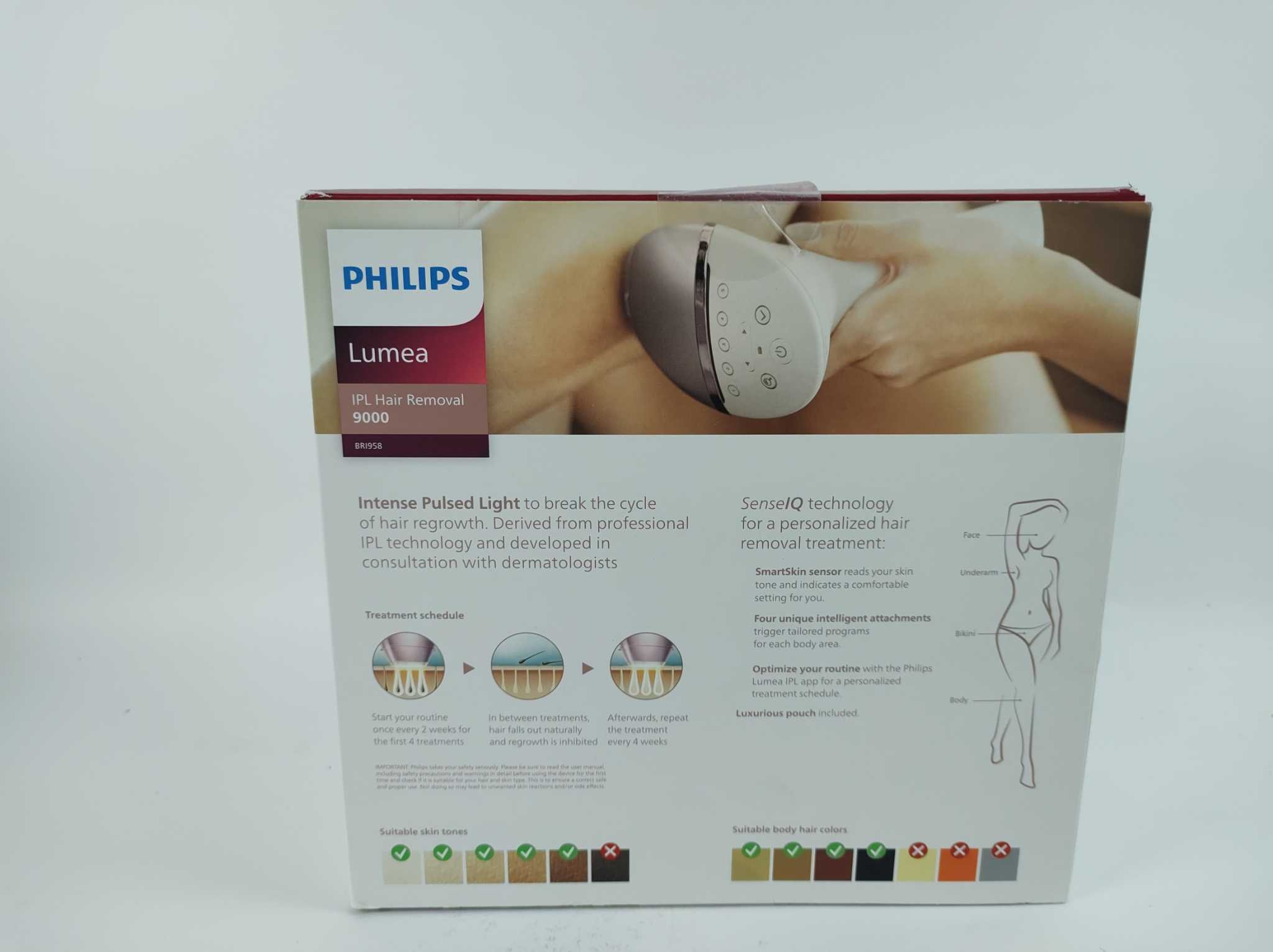 Philips IPL Ontharingsapparaat Lumea 9000 Series - BRI958. Bereik langdurig haarvrije resultaten met Philips Lumea 9000 Series BRI958 met SenseIQ-technologie. De SmartSkin-sensor kiest automatisch de ideale lichtstand; je gebruikt het toestel draadloos of Lees meer