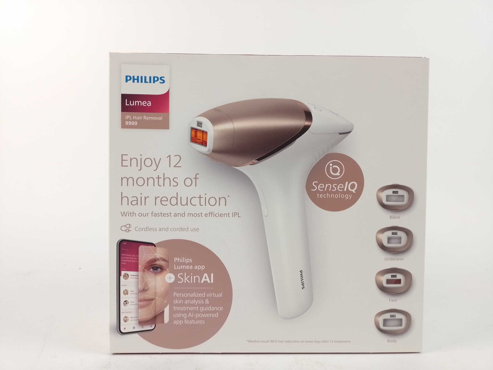 Philips IPL Ontharingsapparaat Lumea - BRI951/01. De Philips Lumea IPL 9900 Series BRI951/01 biedt langdurige haarvermindering met geavanceerde IPL-technologie en AI-ondersteunde huidanalyse. Dankzij SmartSkin-sensoren past het apparaat zich automatisch a