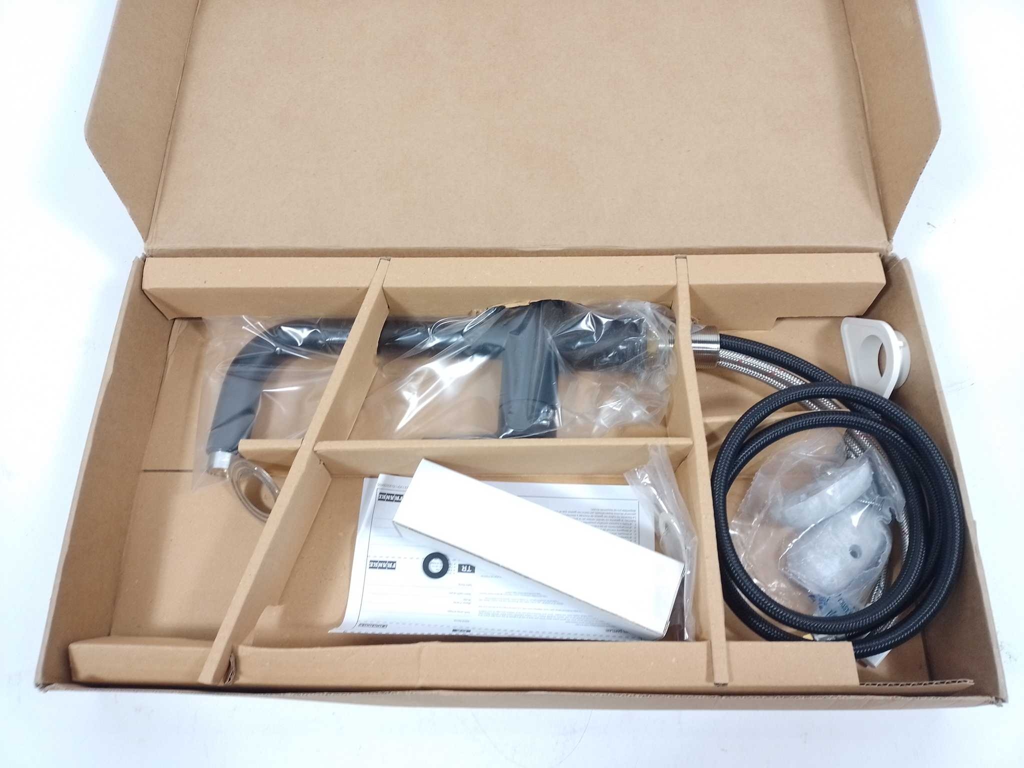 Franke Keukenkraan Active - FN 6110.901 - Matzwart. De Franke Active L keukenkraan in mat zwart combineert strak design met dagelijks gemak. De uittrekbare handdouche met dubbele straal spoelt pannen en groente snel schoon. Dankzij 180° draaibare L-uitloop, laminaire perlator en waterbesparende stand werk je comfortabel zonder spetteren. De 35 mm keramische cartouche bedient soepel met één hendel en is geschikt voor hoge druk. Inclusief flexibele aansluitslangen (450 mm) en verstevigingsplaat voor montage op RVS spoeltafels. De krasvaste coating en robuuste messing constructie maken hem duurzaam en onderhoudsvriendelijk.