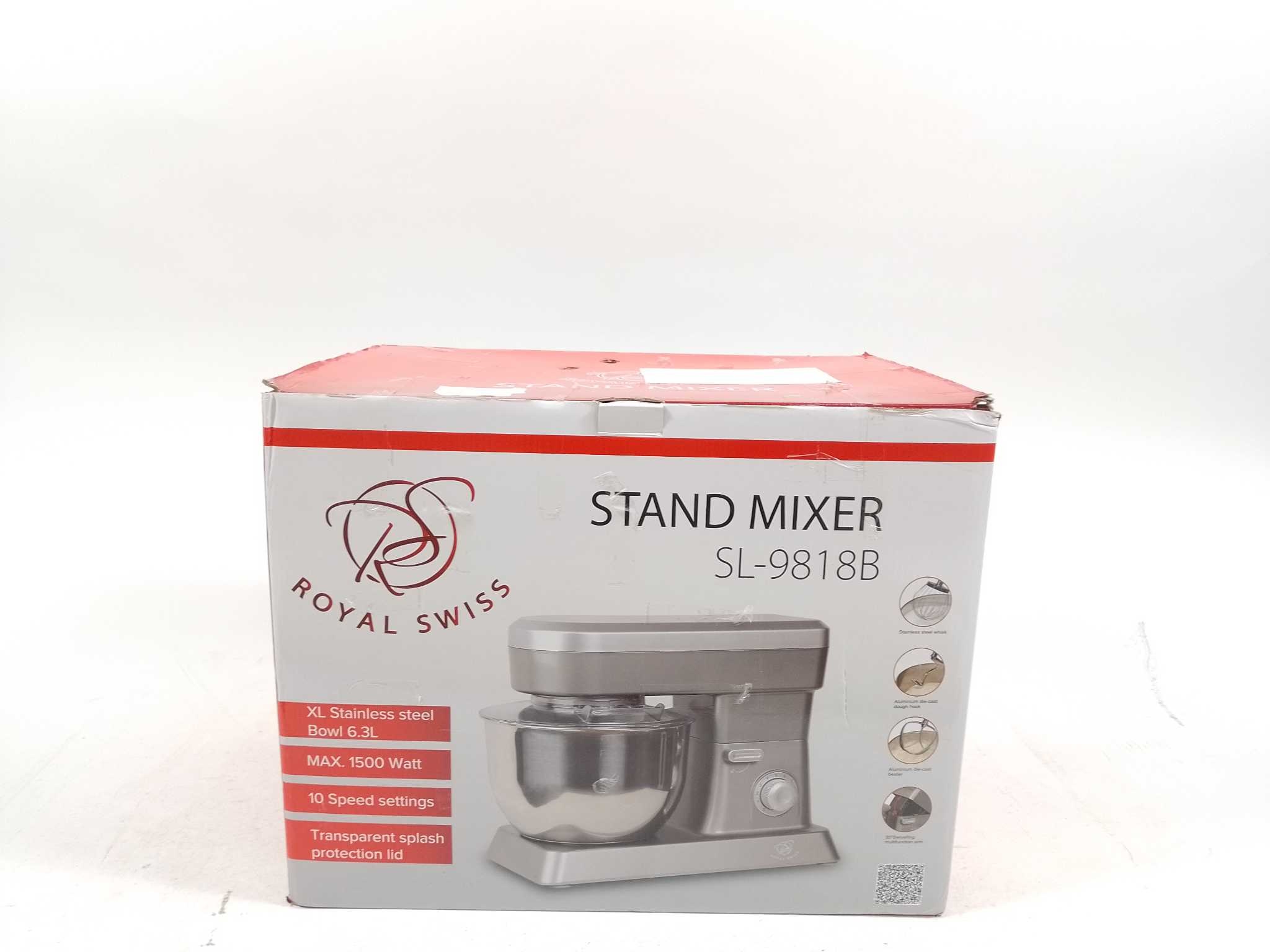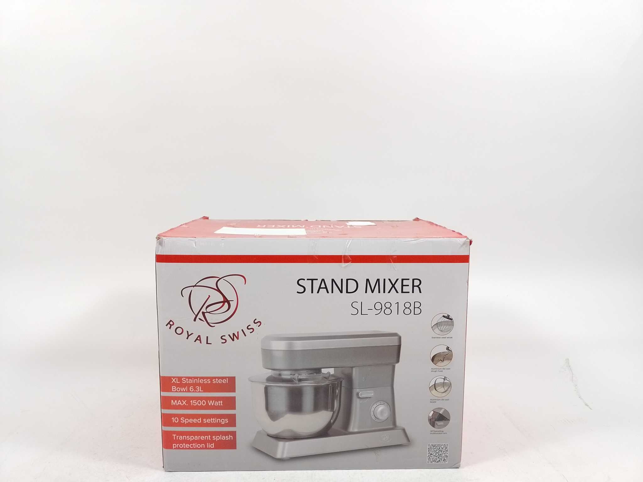 Royal Swiss Keukenmachine SL-9818B - Zilver. De Royal Swiss SL-9818B keukenmixer (1500 W, 6,3 l) biedt professionele prestaties voor thuisgebruik. Met een robuuste RVS mengkom en 10 snelheidsstanden verwerk je tot 3,5 kg deeg in één keer. De meegeleverde