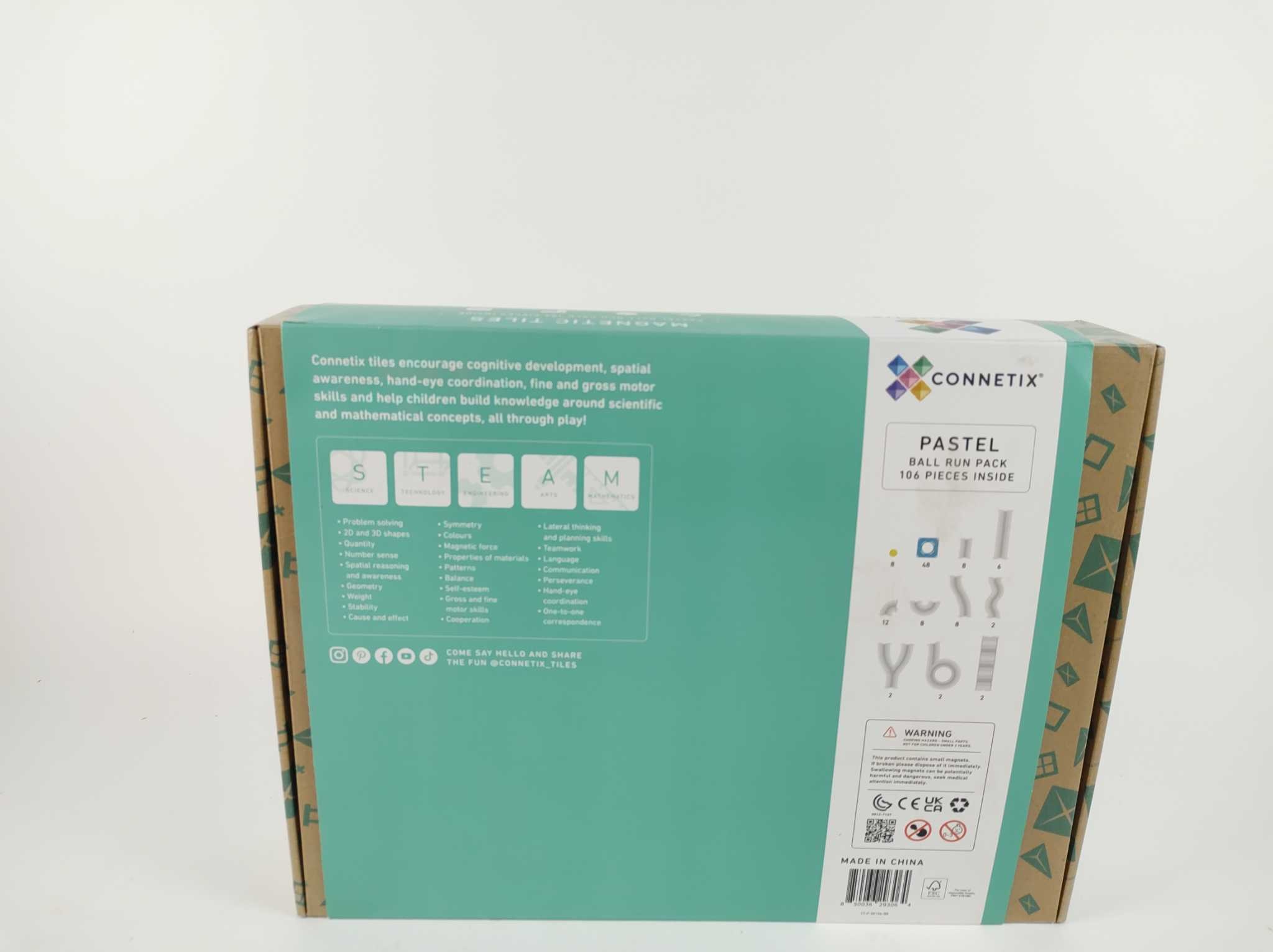 Connetix Knikkerbaan Pastel - 106 stuks. Stimuleer creativiteit en probleemoplossend denken met de Connetix Knikkerbaan (106 stuks)! Deze kleurrijke magnetische knikkerbaan bevat transparante buizen, bochten en hellingen voor eindeloos bouwplezier. Compatibel met andere Connetix-sets en veilig voor kinderen. Perfect voor educatief spel en urenlang vermaak. Laat fantasie en techniek samenkomen! Materiaal: Kunststof. Product breedte: 44.9 cm. Voedingstype: Geen voedingstype.