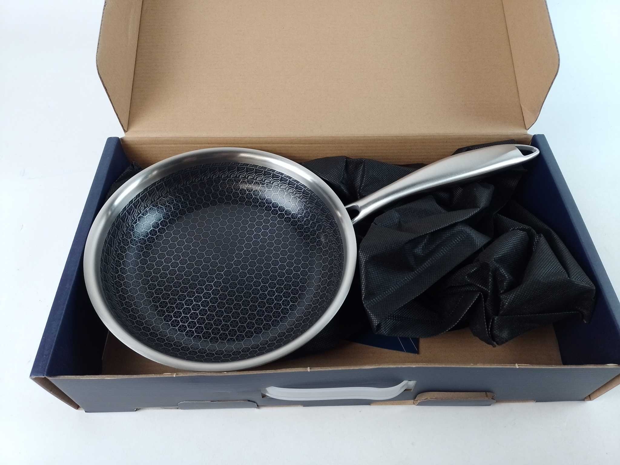 Blue Liberty Koekenpan 20cm - Zwart. De Blue Liberty koekenpan 20 cm combineert RVS met een keramische, PFAS-vrije hybride honingraatlaag voor duurzaam, krasbestendig bakken. De tri-ply bodem zorgt voor snelle, gelijkmatige warmteverdeling. Geschikt voor alle warmtebronnen, inclusief inductie, en ook oven- en vaatwasserbestendig. Ideaal voor eieren, groenten en vlees met minimale olie. Het ergonomische handvat ligt stevig in de hand. Inclusief luxe opbergtas en duidelijke handleiding. Kies voor professionele resultaten thuis met deze compacte, veelzijdige pan die elke dag topprestaties levert. Duurzaam, stijlvol en onderhoudsvriendelijk, betrouwbaar.