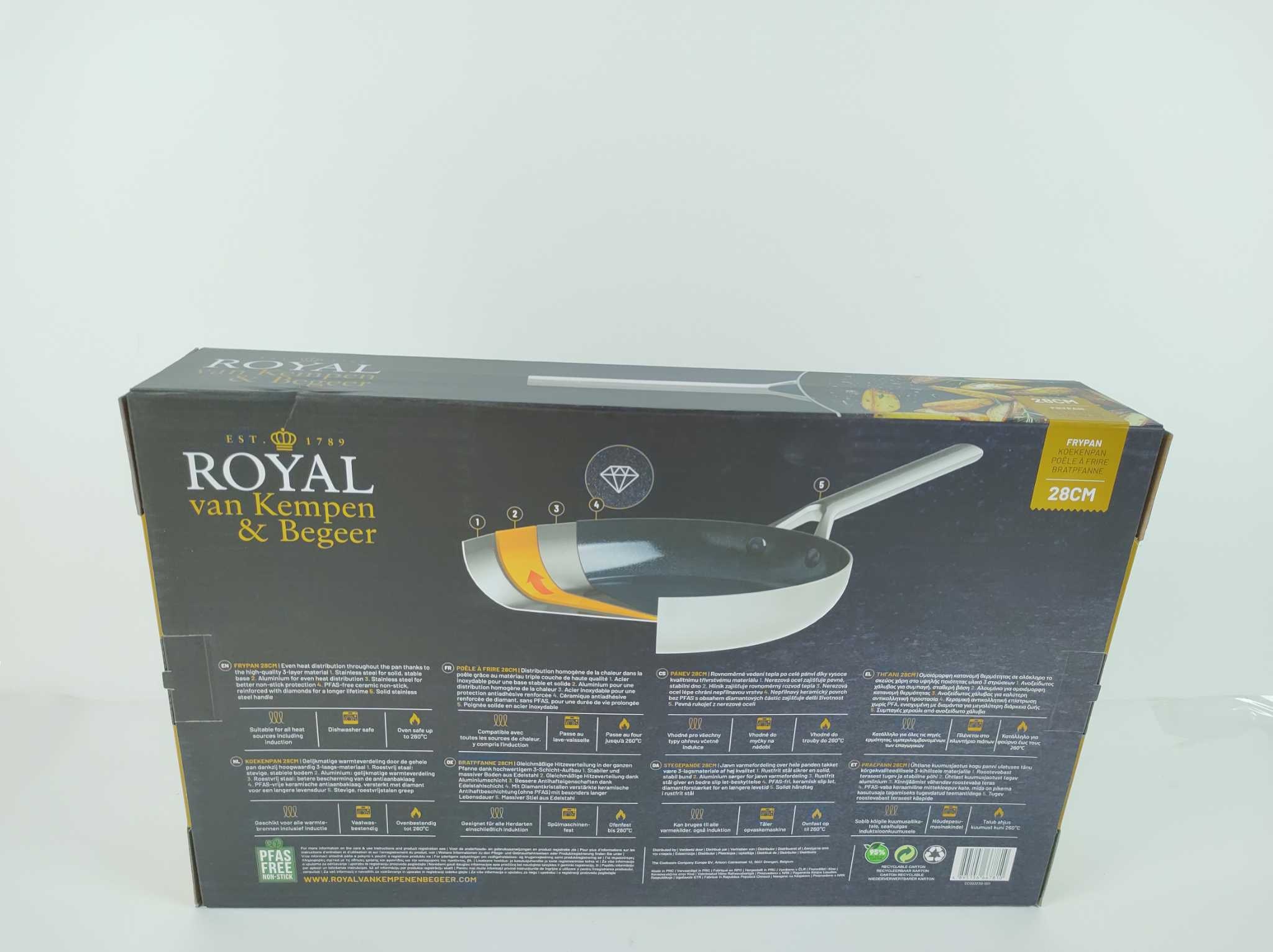 Royal van Kempen en Begeer Koekenpan 28cm. De Royal van Kempen & Begeer koekenpan 28 cm is een veelzijdige pan voor dagelijks koken, bakken en braden. De meerlaagse roestvrijstalen kern zorgt voor gelijkmatige warmteverdeling, terwijl de PFAS-vrije kerami