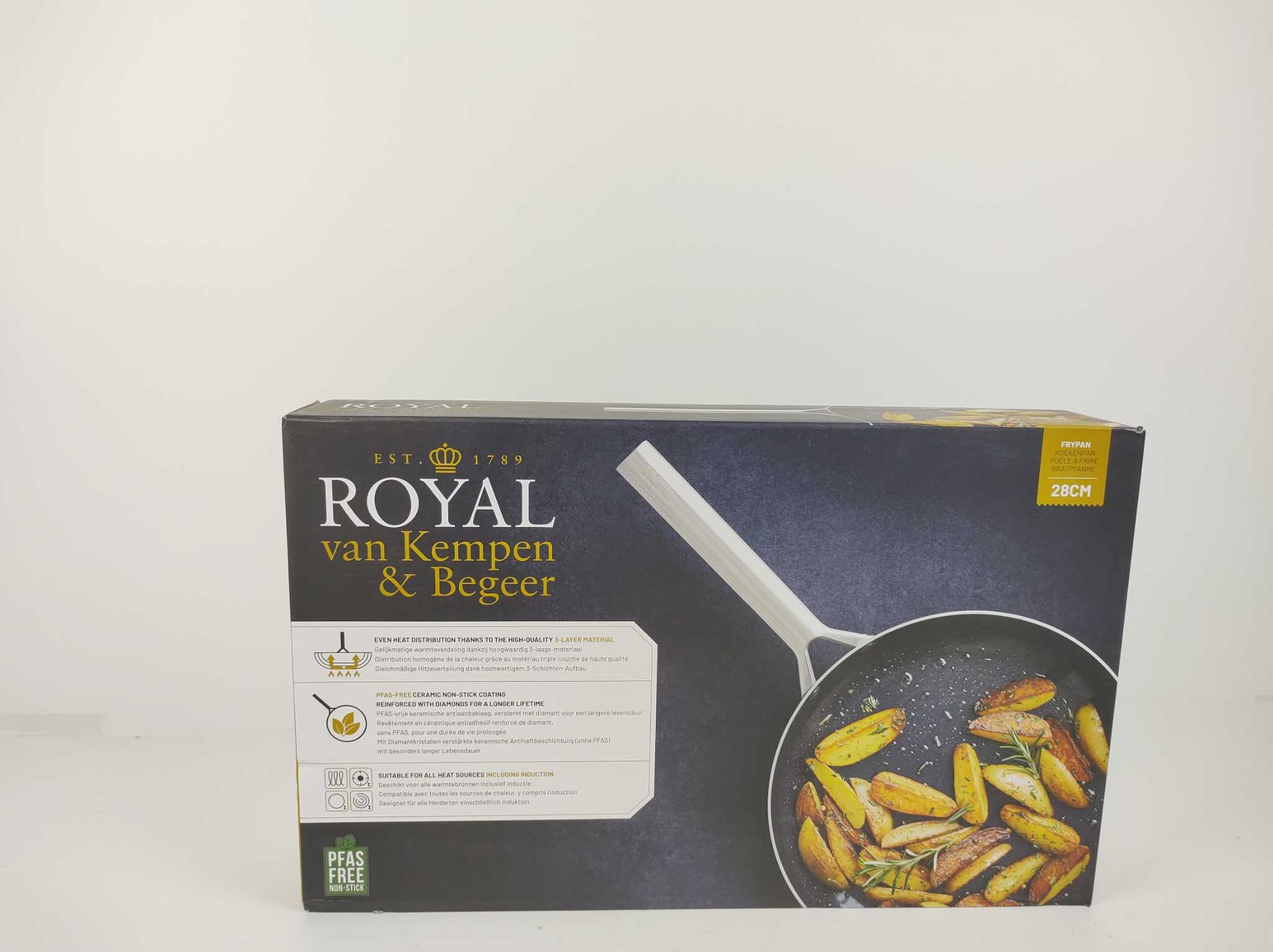 Royal van Kempen en Begeer Koekenpan 28cm. De Royal van Kempen & Begeer koekenpan 28 cm is een veelzijdige pan voor dagelijks koken, bakken en braden. De meerlaagse roestvrijstalen kern zorgt voor gelijkmatige warmteverdeling, terwijl de PFAS-vrije kerami