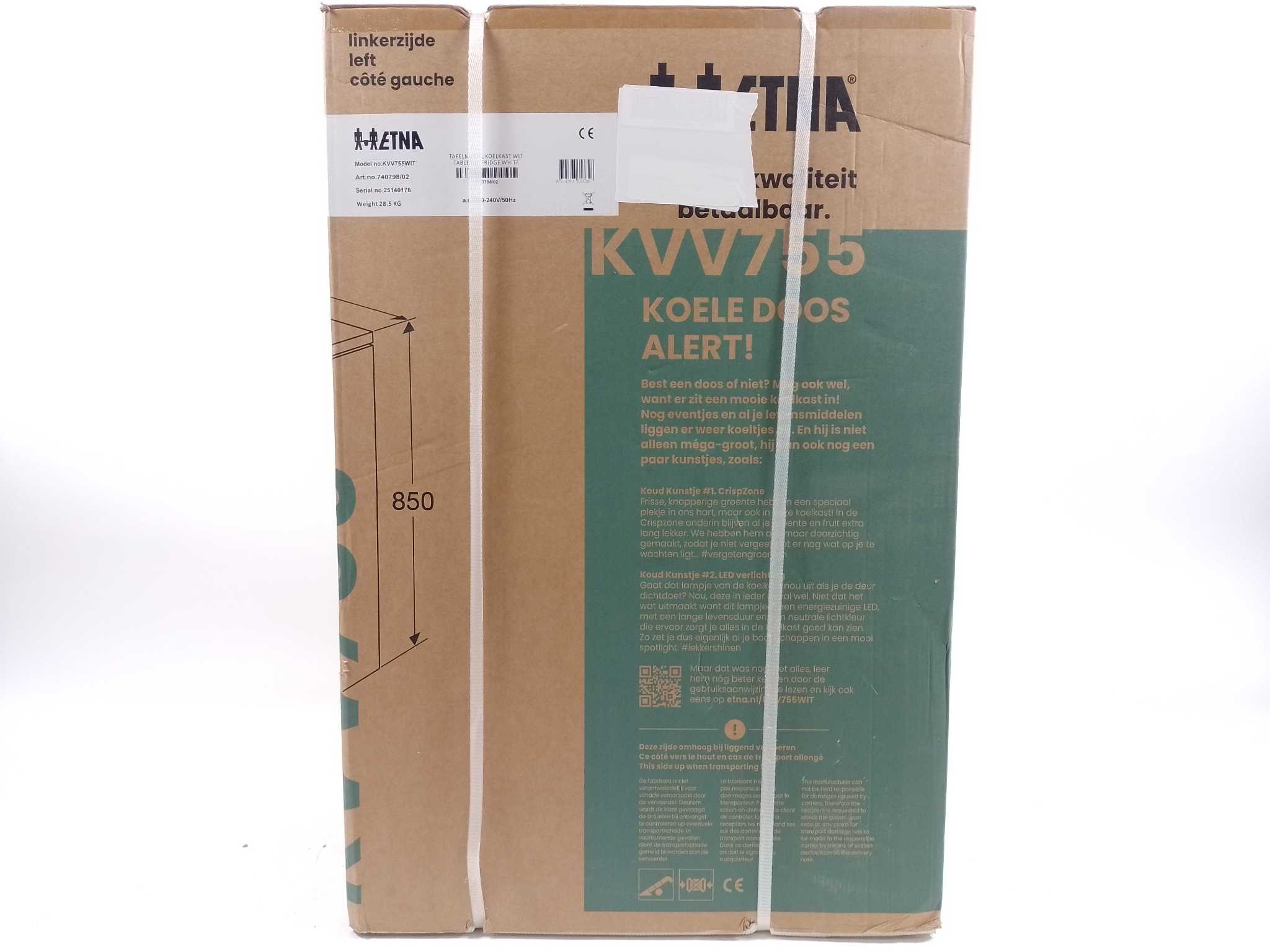 Etna Koelkast KVV755WIT - 109L - Wit. De ETNA KVV755WIT is een compact tafelmodel met 109 liter inhoud (95 l koel/14 l vries) en 4-sterren vriesvak. Stil 40 dB, energieklasse E en slechts 85 cm hoog: ideaal onder het aanrecht. Handige indeling met 2 verst