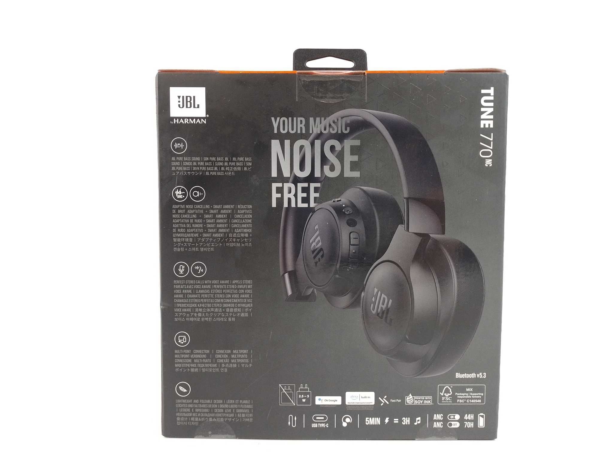 JBL Koptelefoon Tune 770NC - Zwart. De JBL Tune 770NC is een draadloze over-ear koptelefoon met adaptieve noise cancelling en JBL Pure Bass Sound. Met Bluetooth 5.3, multipoint-verbinding en een batterijduur tot 70 uur (44 uur met ANC) biedt hij langdurig