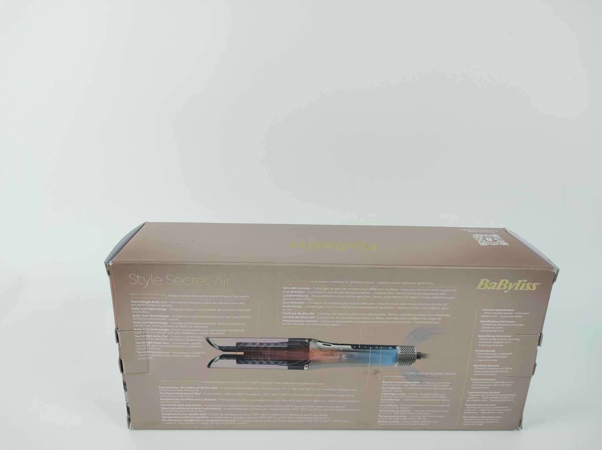 Babyliss Krultang Style Secret Air - C6688E. De BaByliss Style Secret Air C6688E automatische krultang maakt moeiteloos glanzende krullen, zachte golven en een luchtige blow-out look. Dankzij Auto-Curl technologie, een 25 mm keramische cilinder en de combinatie van warmte en luchtstroom style je snel en veilig zonder klitten. Met 4 warmte- en luchtinstellingen, 4 timerstanden en 3 draairichtingen stem je elke look af op jouw haartype. Inclusief hittebestendige mat, zodat je direct comfortabel en verzorgd aan de slag kunt met veelzijdige haarstyling thuis voor ieder gewenst resultaat.