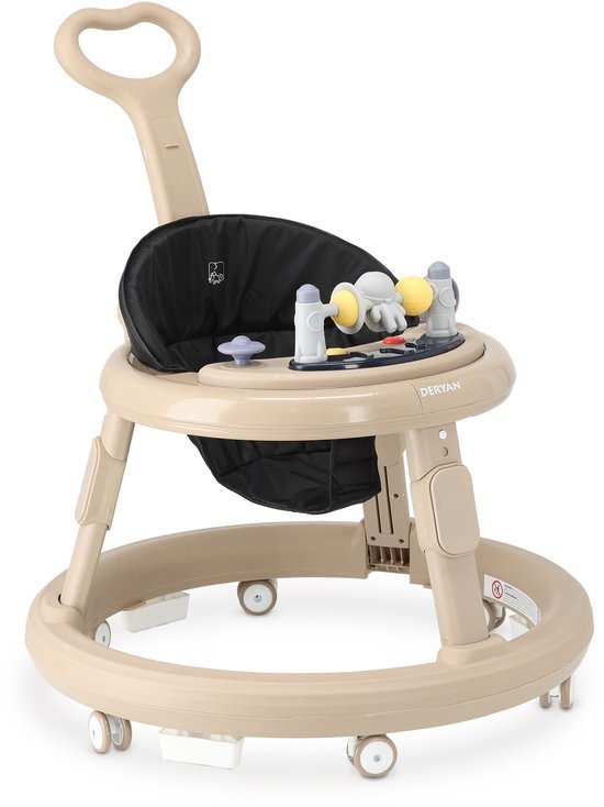 Deryan Loopstoel Mover - Nougat. De Deryan Mover loopstoel in kleur Nougat geeft je baby veilige bewegingsvrijheid en speelplezier. Het stabiele ronde onderstel met 360° zwenkwielen manoeuvreert soepel door de kamer en helpt omvallen voorkomen. De ergonomische, in hoogte verstelbare zitting ondersteunt comfortabel vanaf ongeveer 6 maanden tot 12 kg. Het interactieve speelblad stimuleert ontdekken en motoriek. Inklapbaar voor compact opbergen. Inclusief duwstang voor extra controle en begeleiden tijdens de eerste stapjes thuis. Zachte materialen zijn eenvoudig te reinigen en passen mooi in moderne interieurs.