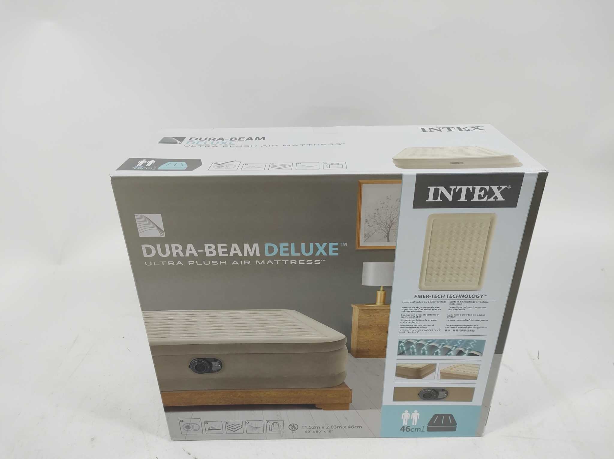 Intex Luchtbed Ultra Plush - 152x203x46 cm. Het Intex Ultra Plush tweepersoons luchtbed biedt luxe slaapcomfort voor logees, kampeertrips en overnachtingen thuis. Dankzij de hoogte van 46 cm stap je gemakkelijk in en uit, terwijl de Fiber-Tech constructie