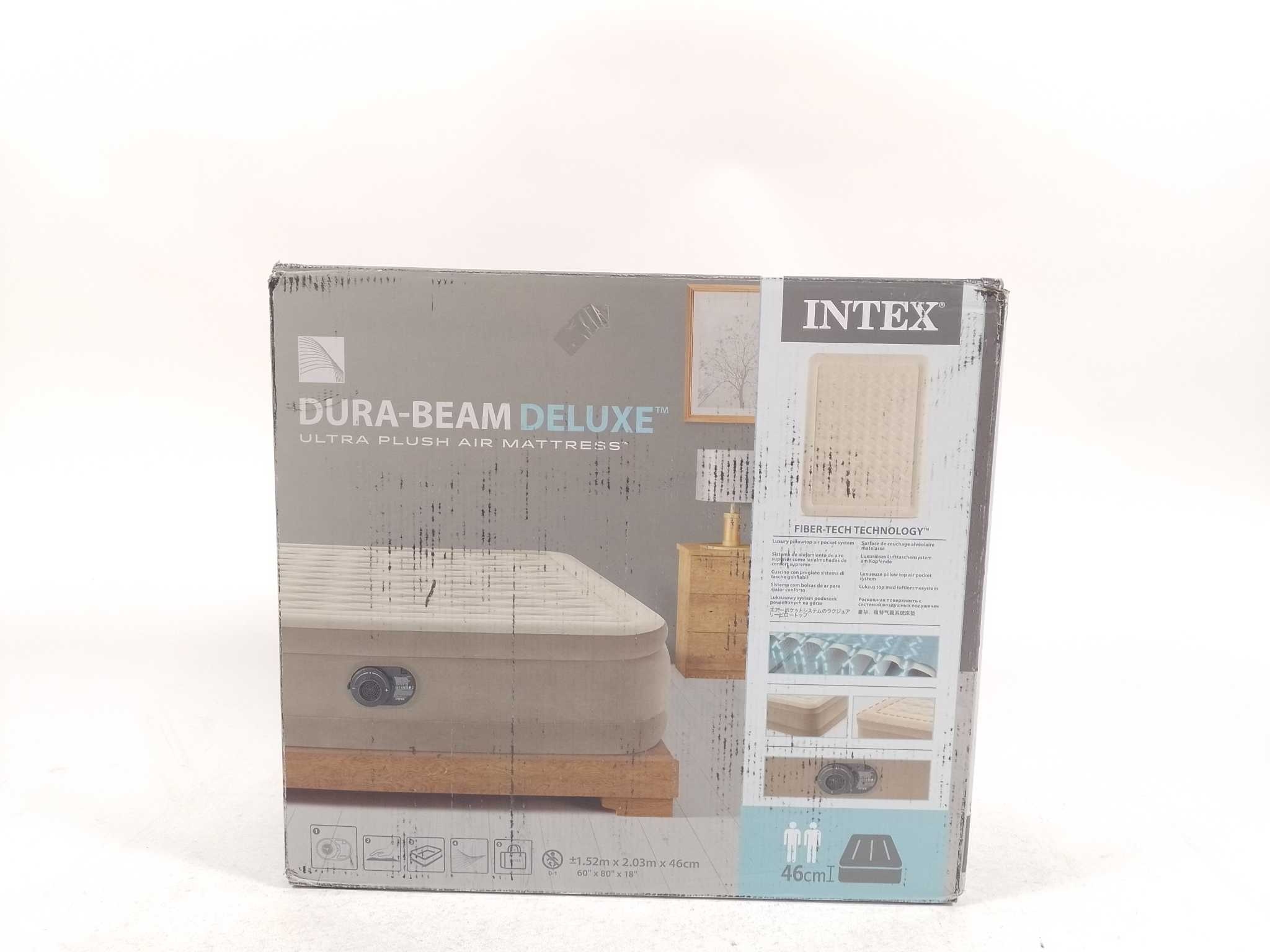 Intex Luchtbed Ultra Plush - 152x203x46 cm. Het Intex Ultra Plush Luchtbed biedt comfort en ondersteuning dankzij de dikke, zachte afwerking. Met een afmeting van 152x203x46 cm is het ideaal voor twee personen. Het duidelijke ontwerp met extra stevige rand zorgt voor extra stabiliteit, perfect voor een comfortabele nachtrust of logeerpartij. Product breedte: 152 cm. Kleur: Beige | Bruin. Materiaal: Vinyl.