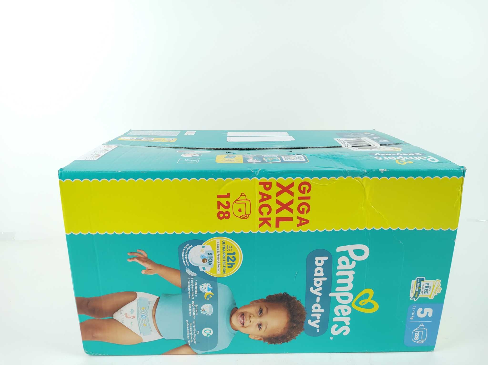 Pampers Luiers Baby Dry - Maat 5 - 128 stuks. De Pampers Baby-Dry luiers maat 5 zijn ideaal voor baby’s van 11 tot 16 kg en bieden langdurige droogheid en betrouwbare bescherming, ook ’s nachts. Dit giga pack bevat 128 luiers en is perfect voor dagelijks