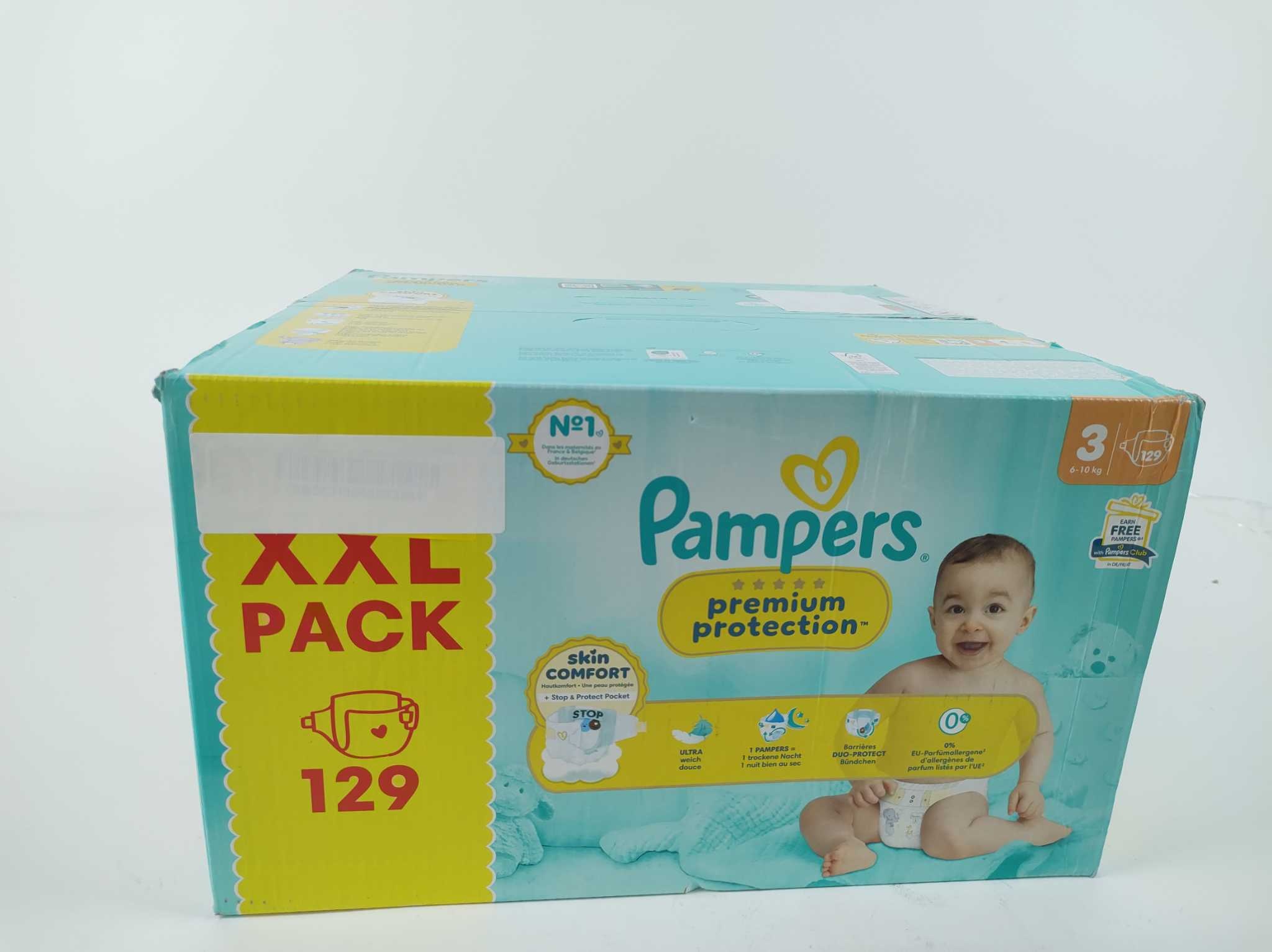 Pampers Luiers Premium Protection - Maat 3 - 129 stuks. Pampers Premium Protection luiers maat 3 zijn ideaal voor baby’s van 6 tot 10 kg en bieden zachte, betrouwbare bescherming bij elke verschoonbeurt. Dit XXL pack bevat 129 luiers en is perfect voor da