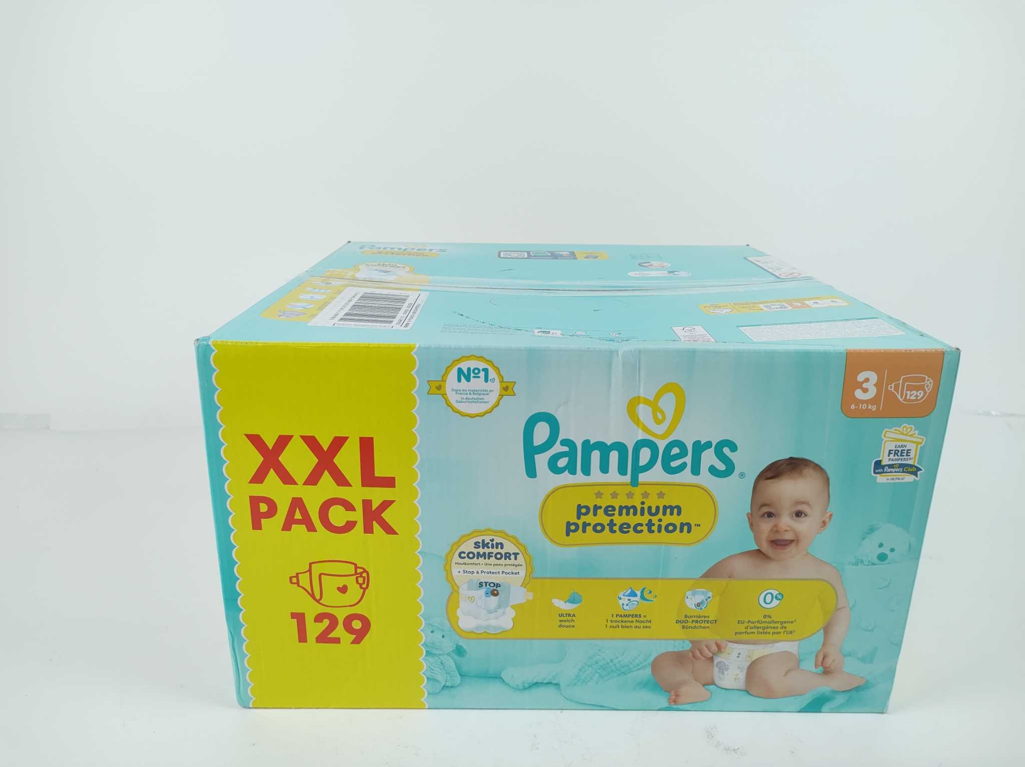 Pampers Luiers Premium Protection - Maat 3 - 129 stuks. Pampers Premium Protection luiers maat 3 zijn ideaal voor baby’s van 6 tot 10 kg en bieden zachte, betrouwbare bescherming bij elke verschoonbeurt. Dit XXL pack bevat 129 luiers en is perfect voor da