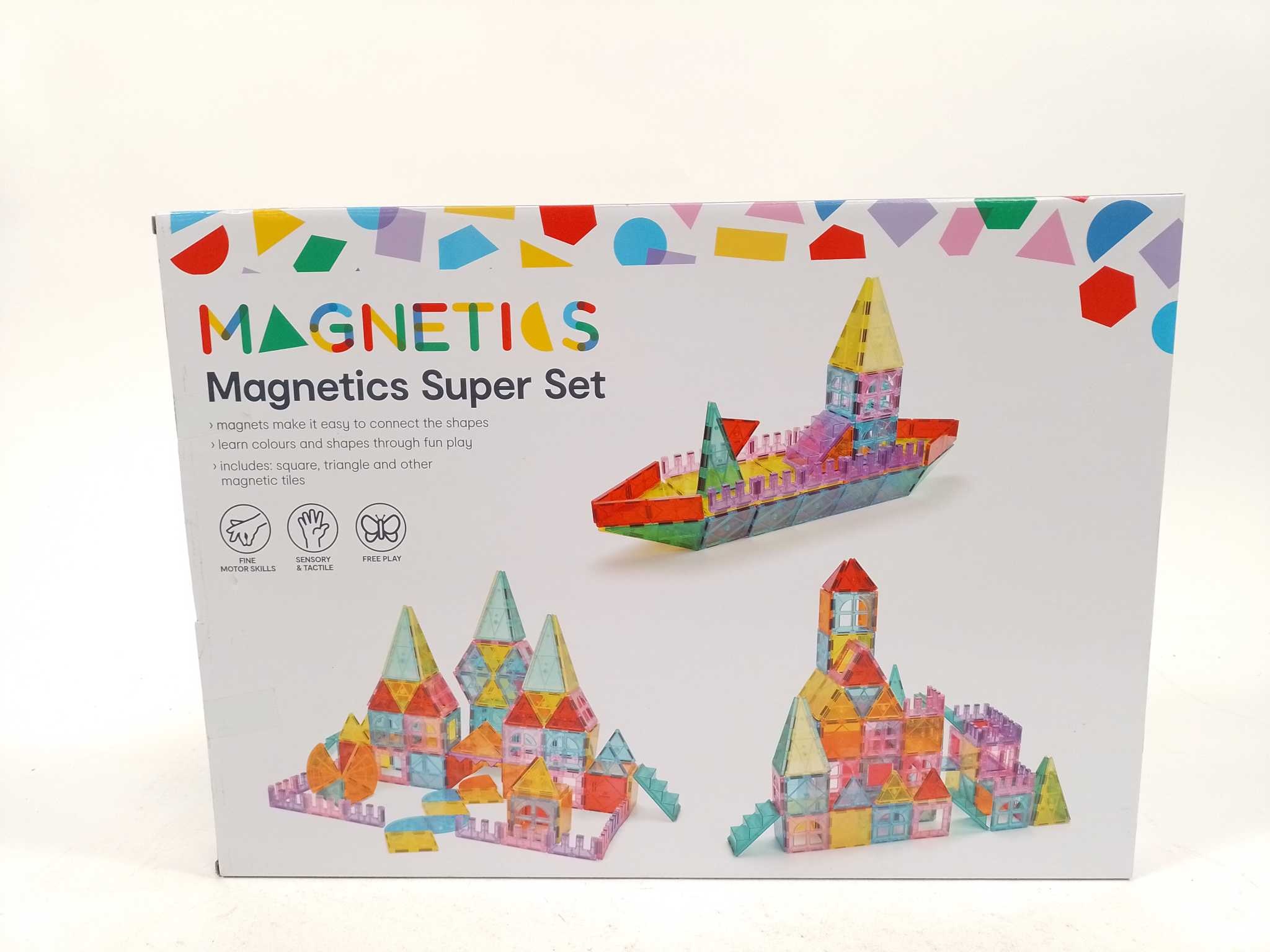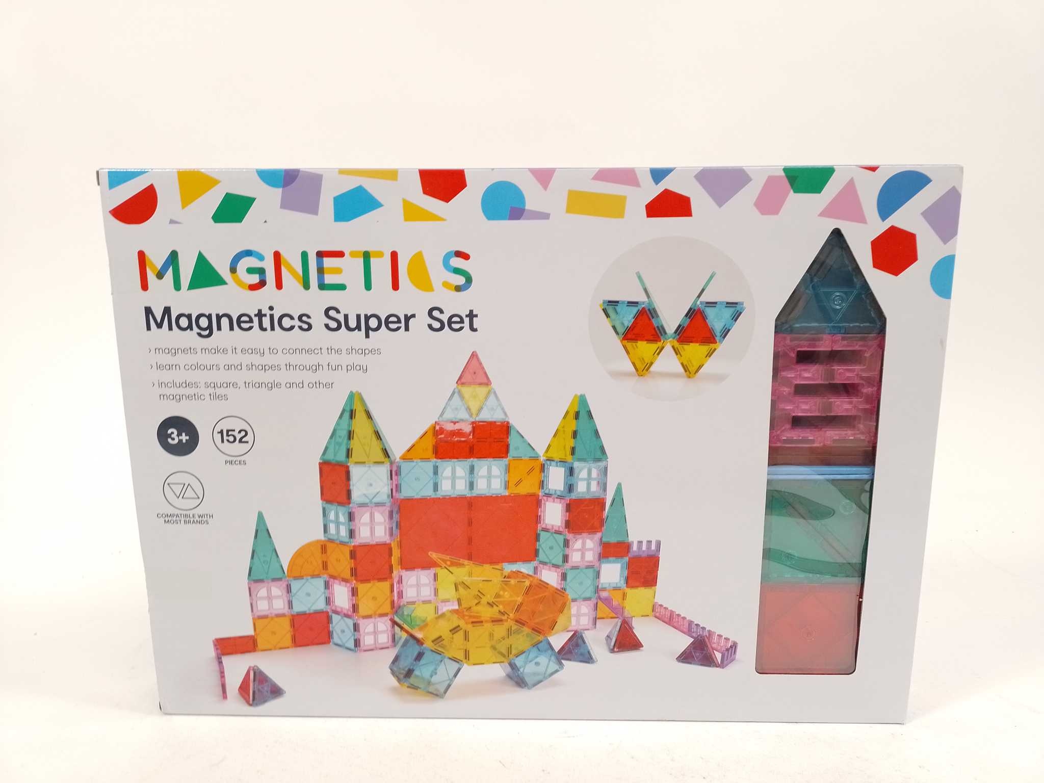 Magnetics Magnetische Super Set - 152 stuks. Laat kinderen al spelend leren met de Magnetics Magnetische Super Set (152-delig). Deze magnetische bouwset met kleurrijke, geometrische onderdelen klikt stevig aan elkaar, zodat je snel huizen, dieren en 3D-fi