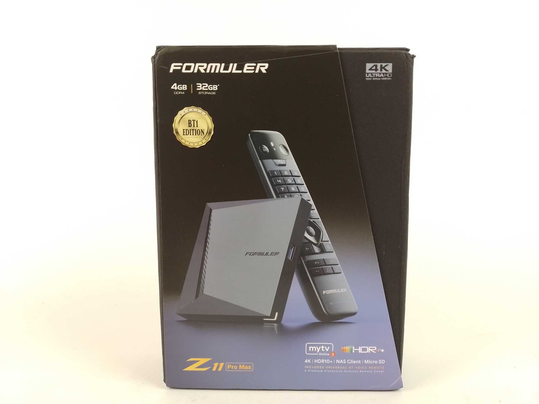 Formuler Mediaspeler Z11 Pro Max. De Formuler Z11 Pro Max BT Edition is een razendsnelle 4K IPTV-box mediaspeler met Android 11 en MyTVOnline 3. Dankzij 4GB DDR4 en 32GB opslag start apps vlot, terwijl WiFi 6, dual-band en gigabit LAN voor stabiele stream