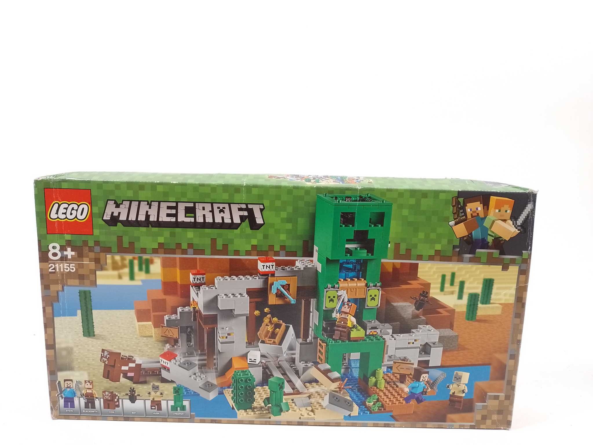 LEGO Minecraft De Creeper Mijn - 21155. LEGO Minecraft De Creeper Mijn is een avontuurlijke bouwset voor kinderen die houden van actie, creativiteit en spannende Minecraft scènes. Deze set bevat een mijn met rails, mijnkarretje en explosiefuncties, plus een onderkomen met groot Creeper standbeeld. Extra compleet dankzij Steve, een smid, een mummie, Creeper, koe en vleermuis. Ook inbegrepen: 3 dynamietblokken, 2 kisten en 4 gouderts-elementen. Perfect voor urenlang bouwen, spelen en verzamelen in een herkenbare Minecraft wereld vol verrassingen en avontuur voor jonge fans van bouwplezier thuis.